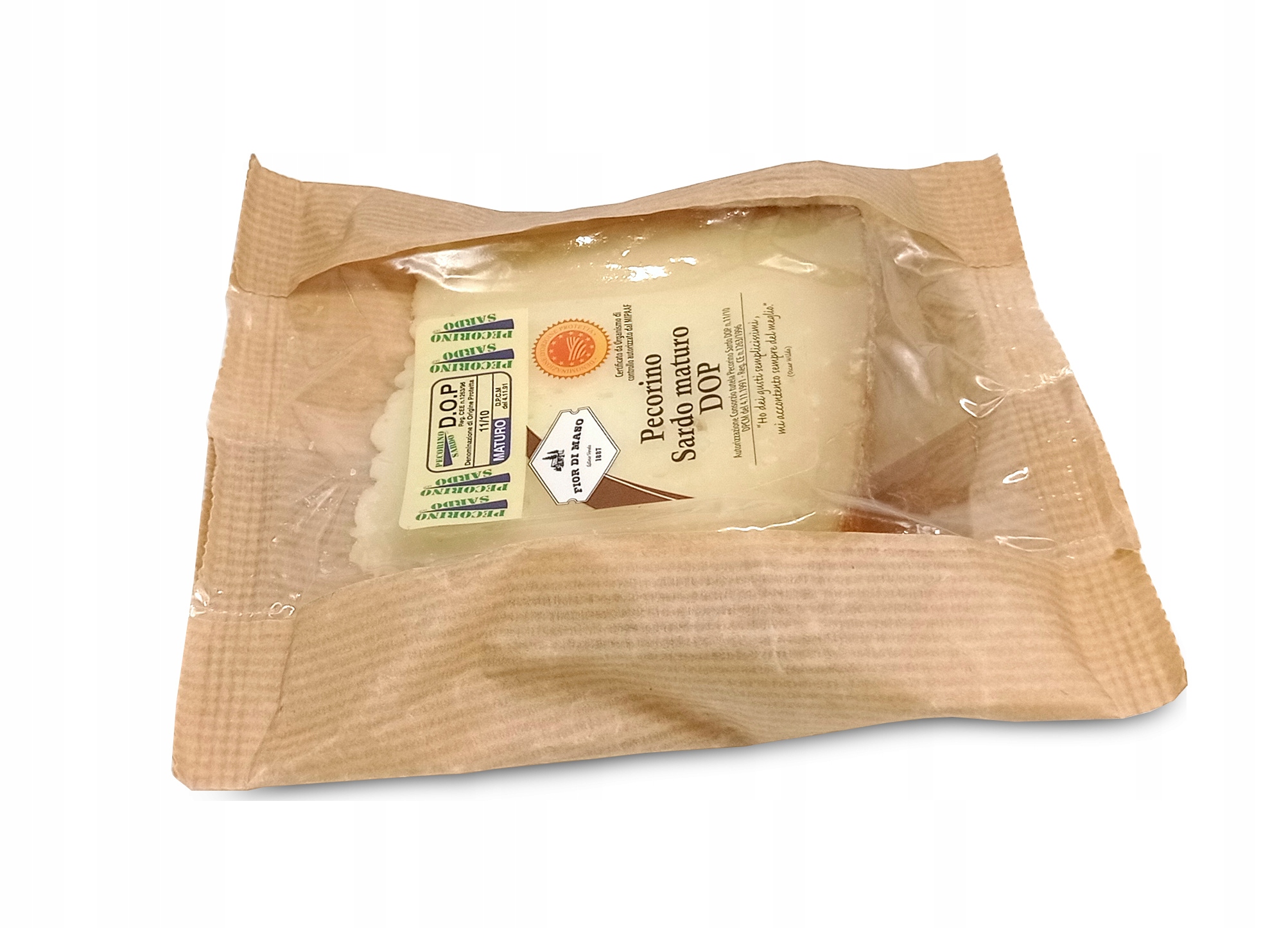 Pecorino Sardo Maturo DOP — превосходный итальянский сыр из Сардинии, сертифицированный DOP (Denominazione di Origine Protetta), гарантирующий его подлинность и качество. Это сыр, изготовленный из овечьего молока, что придает ему характерный вкус и аромат.