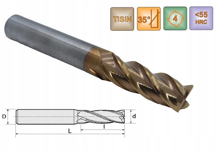 Твердосплавний каучук 4 леза 5 мм 55HRC TiSiN