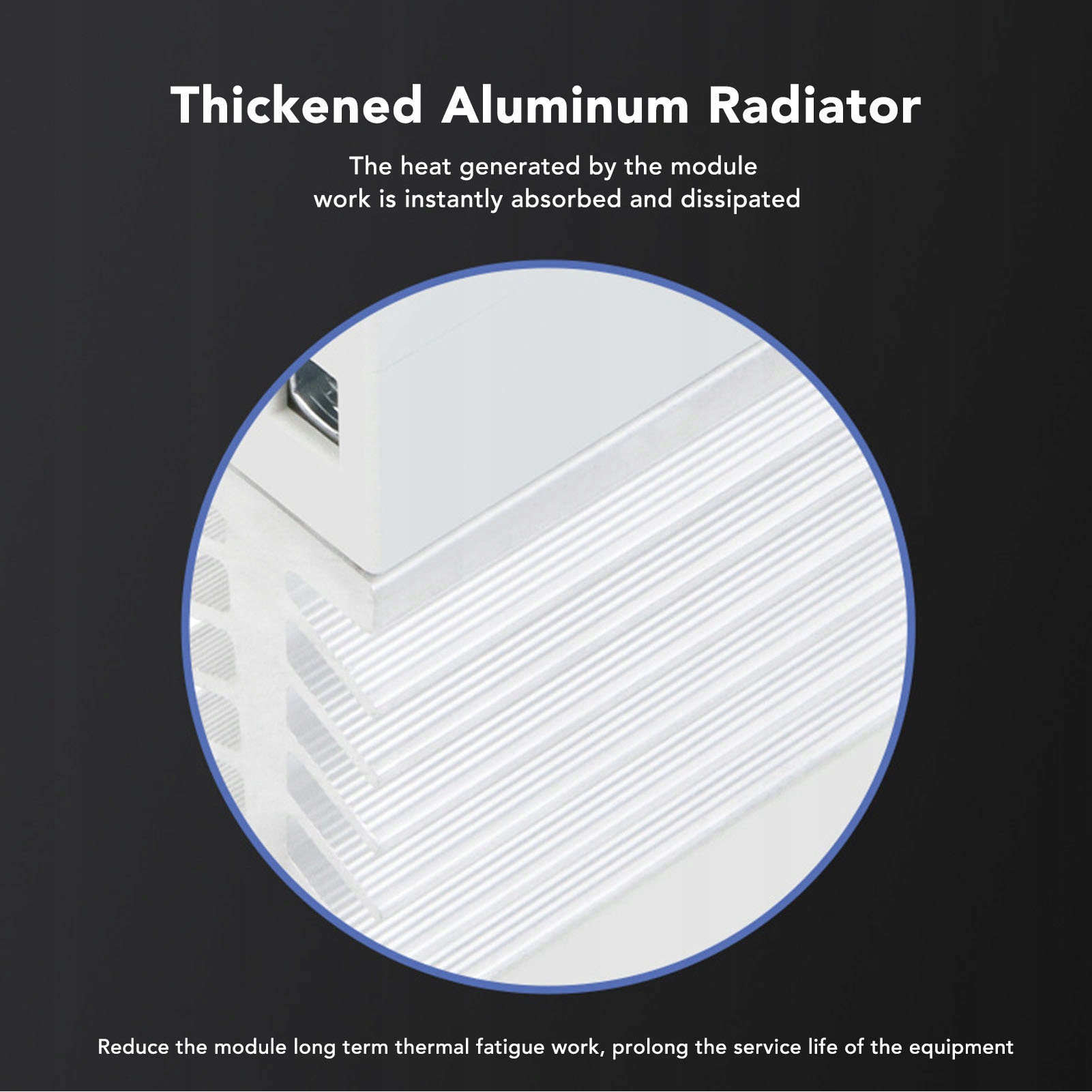 5. [Эффективное рассеивание тепла] Оснащенный утолщенным алюминиевым радиатором, он эффективно поглощает и рассеивает тепло, снижая тепловую усталость и продлевая срок службы оборудования.