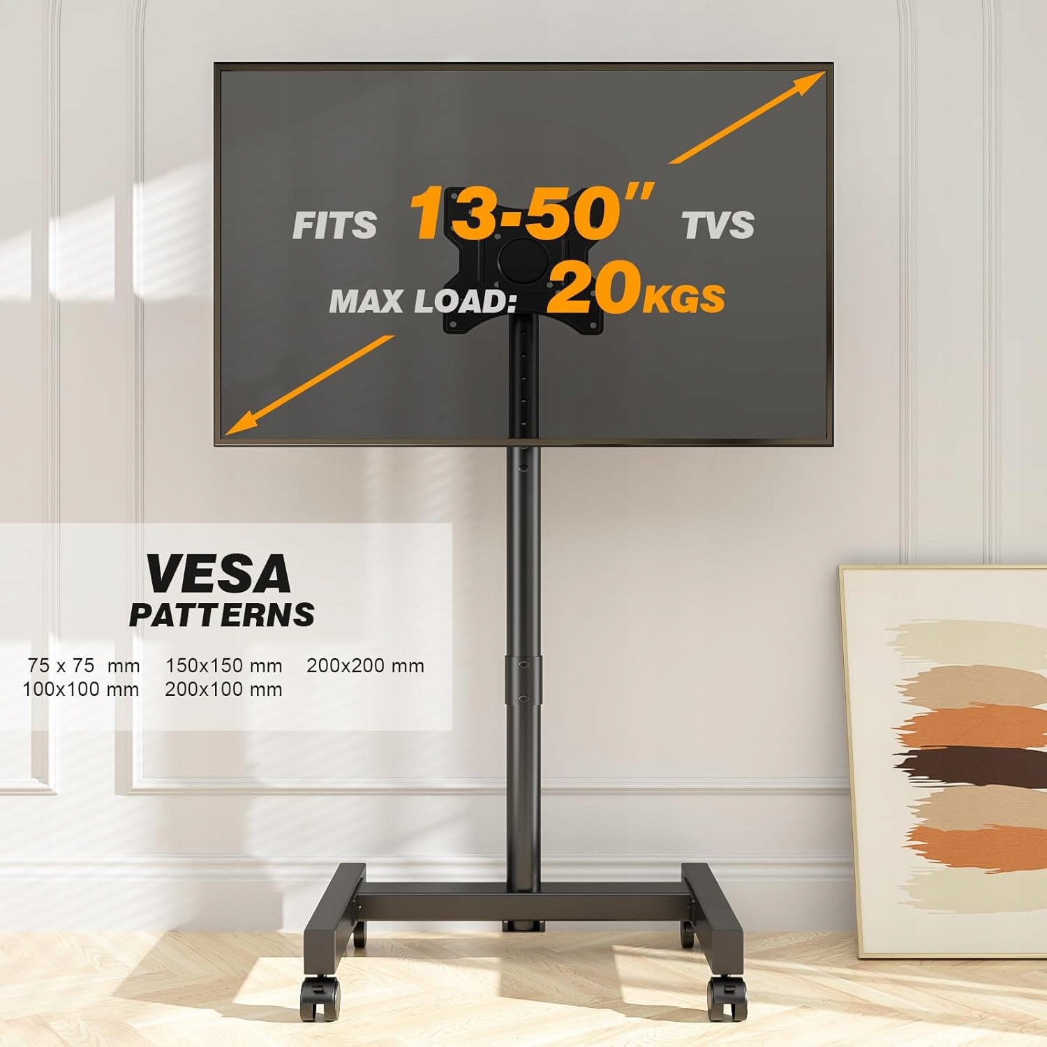ТВОН – Подставка под телевизор 13–43", поворот на 90°, 20 кг, регулировка, колеса/подушки