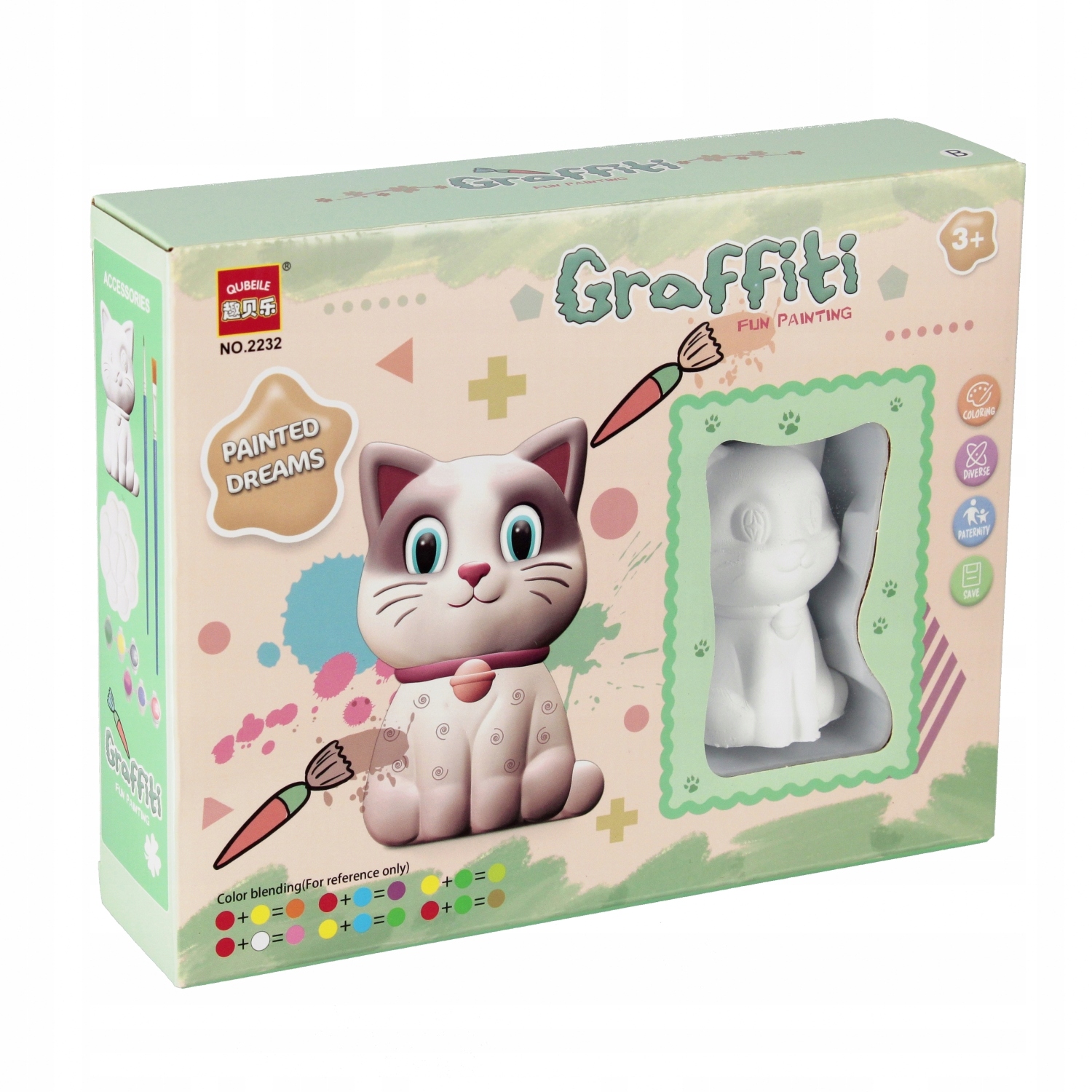 Достоинства продукта: развивает творческие способности ребенка, развивает его ручной труд. Каждая маленькая творческая душа будет в восторге от возможности поиграть с Креативным набором от MEGA CREATIVE. Набор – идеальное решение для времяпрепровождения за игрой с ребенком. В наборе: 1 фигурка животного, 2 кисти, 6 красок, 1 палитра красок. Все сделано из пластика, волос и керамики. Изделие доступно в четырех вариантах дизайна: Котенок, Зайчик, Собака, Зайчик. Размеры/вес/батарейки: размеры упаковки: длина х высота х глубина. см: 21х7х6, размеры изделия: длина х высота х глубина. Рисунок 4х8х4 см, вес изделия без упаковки кг: 0,15 кг, вес изделия в упаковке кг: 0,22 кг, Не требуются батарейки. Продукция безопасна для детей. Игрушка предназначена для детей от: 3-х лет. Упакована в коробку с окошком. В упаковке 8 шт. В коллективной картонной упаковке 64/128 шт.
