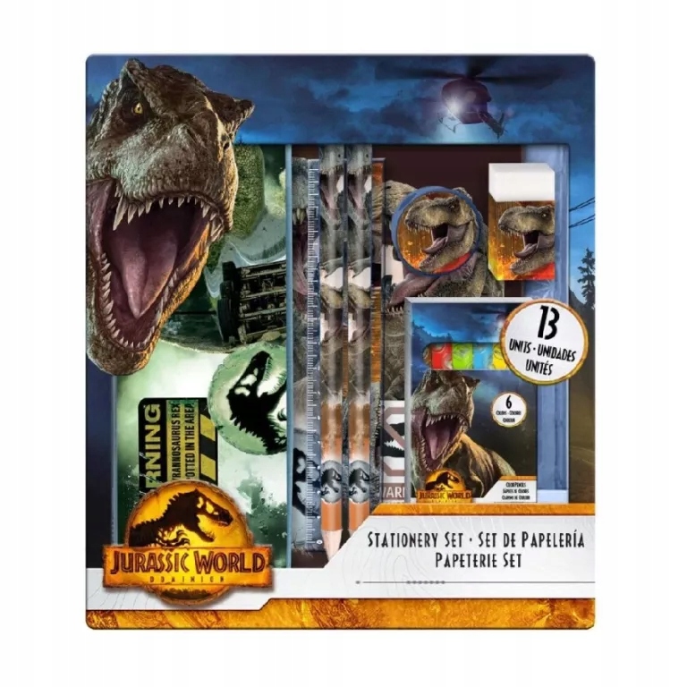 Полный письменный набор с изображением самых известных динозавров в истории кино: «Мир Юрского периода».