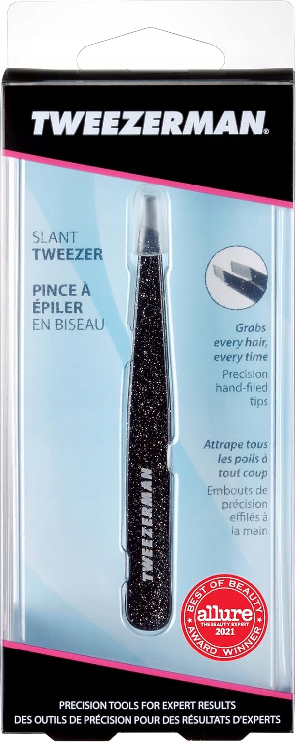 <р> ОПИСАНИЕ ПРОДУКТА <р> Пинцет Tweezerman Dusted Onyx 40th Anniversary Slant Tweezers — удостоенный наград пинцет со скошенным кончиком — позволяет профессионально придать форму вашим бровям. Allure является лауреатом премии Best of Beauty с 2001 года. Пинцеты Slant Tweezers признаны за высочайшее и профессиональное качество. Наши щипцы со скошенными кончиками, изготовленные вручную и идеально подогнанные по размеру, каждый раз точно захватывают каждый волосок. Доступен в черном цвете. <р> РУКОВОДСТВО ПОЛЬЗОВАТЕЛЯ <р> Начните с открытия пор теплой тряпкой (не слишком горячей, иначе может возникнуть покраснение!) Это поможет подготовить волосы к удалению, а также уменьшит боль. Держите угловой пинцет большим и указательным пальцами ближе к центру корпуса пинцета для максимального контроля. Обнаружив нежелательные волосы, держите кончики пинцета под углом 25° и сжимайте корпус пинцета, потянув его по направлению роста волос. Это позволит удалить волосы с корнем. Продолжайте, пока не удалите все нежелательные волосы.Параметры продукта