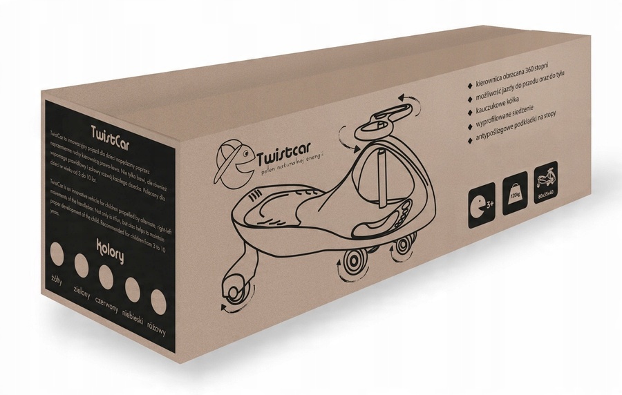 Поддерживает правильное развитие ребенка, используя детскую энергию и преобразуя ее в движение. TwistCar не оснащен педалями, цепями, аккумуляторами и источниками питания. Так как же он путешествует? Просто поверните рулевое колесо немного вправо, затем еще раз влево и вправо. Благодаря попеременным движениям руля вправо-влево TwistCar питается детской энергией! TwistCar — это безопасно и тихо. Эта оригинальная экологическая игрушка — отличная альтернатива телевидению или компьютерным играм. И самое главное – это доставляет детям фантастическое удовольствие! И кататься можно вместе с ребенком.