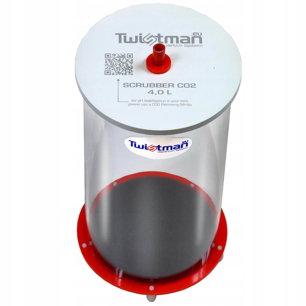 Twistman Scrubber CO2 — фильтр, предназначенный для морских аквариумов. Очищает воздух, поступающий в скиммер, от скопившегося в нем углекислого газа. Благодаря этому даже в помещениях с очень высокой концентрацией CO2 в воздухе pH аквариумной воды не падает.