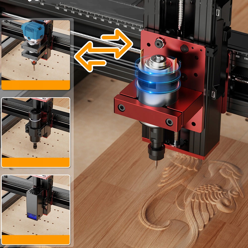 Модуль станка с ЧПУ TTC450 PRO был улучшен и теперь совместим с большим количеством комплектов. Он поддерживает не только комплект поворотного модуля 4-й оси, шпиндель мощностью 500 Вт, но и торцовочно-фрезерный станок, лазерный модуль мощностью 20 Вт. Эти комплекты сделают ваши столярные работы намного более управляемыми!