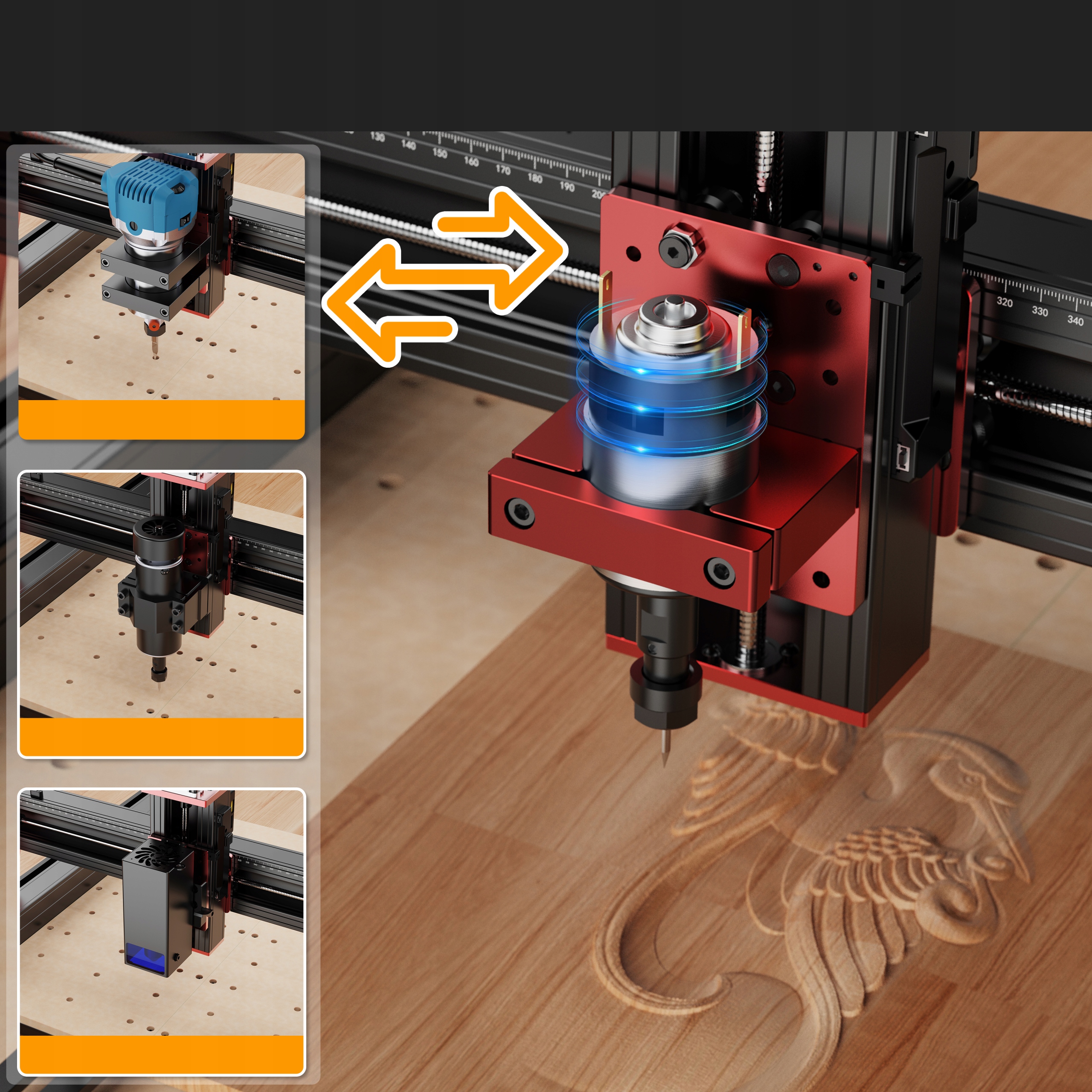 Материал для резьбы: пластик, мягкий алюминий, древесина, акрил, pvc