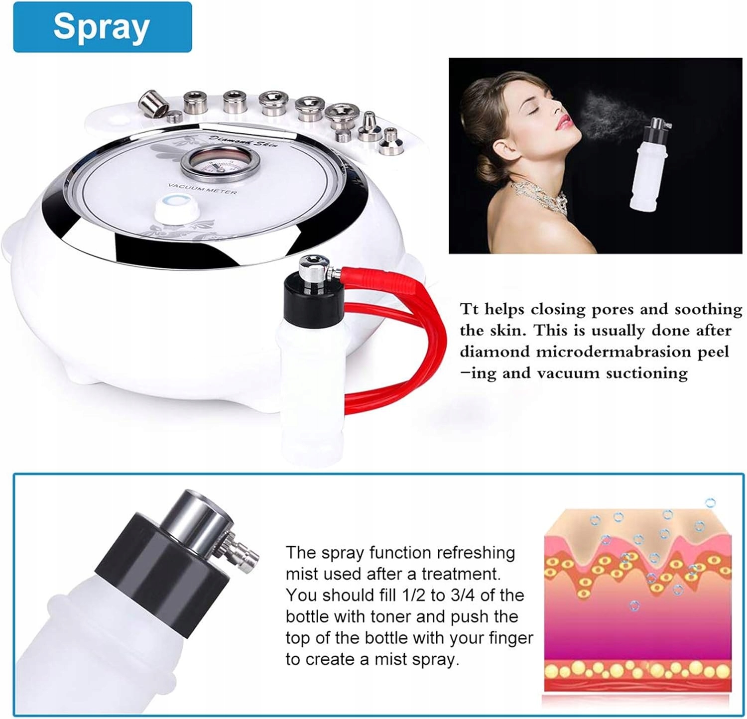 WoWin Diamond Dermabrasion Machine для микродермабразии, 3 в 1, профессиональное омоложение кожи, прыщи, морщины, оборудование для лиц с вакуумным чистком и спрей (сильная сила сосания: 65-68.