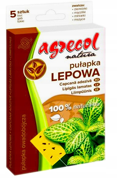 ŻÓŁTY LEP NA ZIEMIÓRKI AGRECOL NATURA MĄCZLIK MSZYCE PUŁAPKA LEPOWA 5 SZTUK