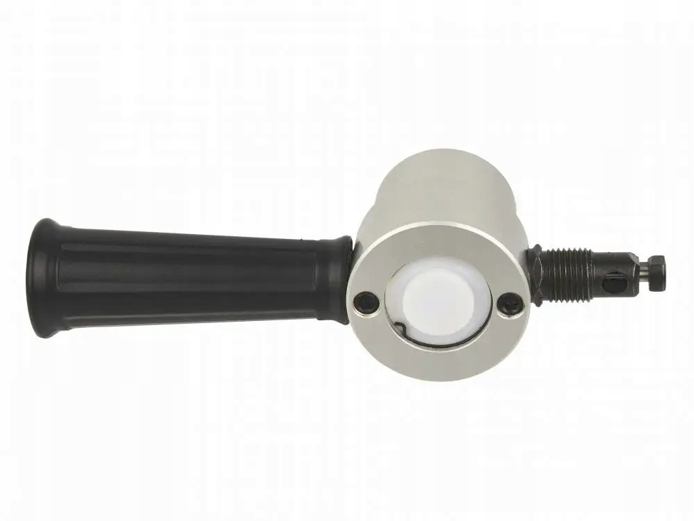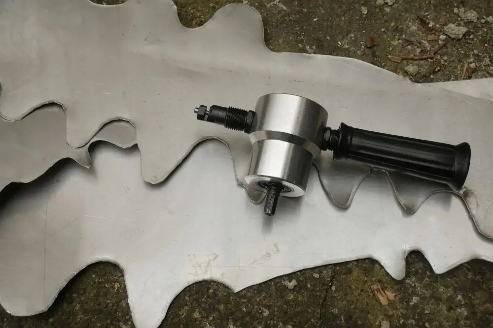 Подключение к бурению используется при резке металлического листа. Очень простой дизайн и простота использования. Приложение работает на основе пакета листа, где специальный ботинок, включенный в буровые упражнения, делает движение скользящей репродукции, разрывая противень. Помимо алюминия, механизм из закаленной стали. Гексагональный диск