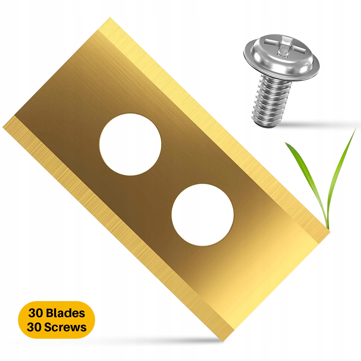 - В комплект входит: 30 сменных титановых лезвий и 30 подходящих винтов, которые можно легко заменить газонокосилку. частей.