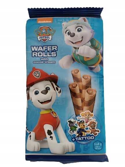 Печенье «Щенячий патруль» Вафельные трубочки с какао-кремом 150г + Тату