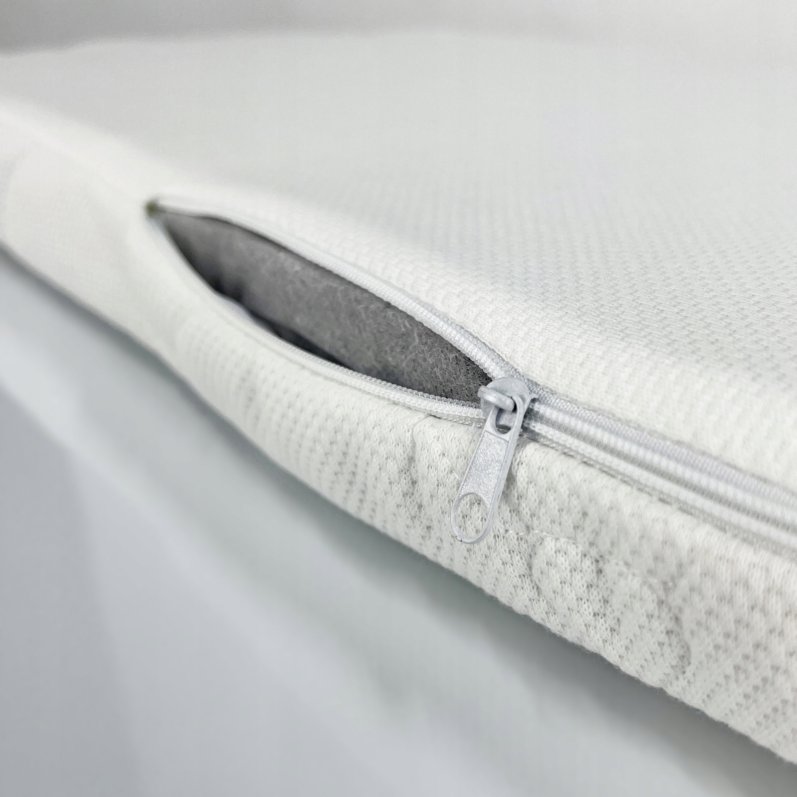 3. Съемный чехол полукругом молния. Изготовлен из приятной на ощупь ткани с приятной на ощупь хлопко-полиэстеровой внешней отделкой (с одной стороны), низ чехла выполнен из нетеганной полиэфирной ткани. Чехол можно стирать в машине.