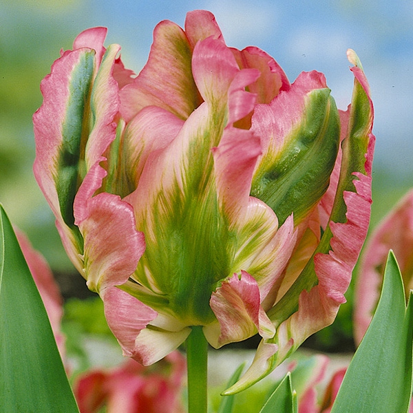 🌷Тюльпан Green Wave Parrot🌷 имеет удивительный зеленый цвет с нежными розовыми полосками на концах волнистых лепестков, напоминающих перья экзотических попугаев. Относится к классу попугаев, но его смело можно отнести и к классу зеленоцветковых. В последние годы оба этих направления активно осваиваются ведущими селекционерами голландских ферм. Его распустившийся бутон каждый день меняет цвет и форму, лепестки, как перья птиц, постоянно меняют положение, плотнее раскрываясь. Вначале в оттенках преобладают зеленый и белый, а затем на границе каждого лепестка активнее проявляется розовый. Неопытному цветоводу сложно даже сразу сказать, что перед вами тюльпан.