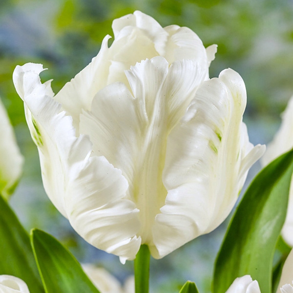 `Попугайный тюльпан White Rebel🤍 – необычный сорт тюльпана, выделяющийся экзотическим внешним видом и характерной формой цветка. Это тюльпан среднего размера, цветущий ранней весной. Его белые цветы красивой формы привлекают внимание. Уникальностью их делает необычная форма – вогнутая и волнистая, напоминающая перья экзотической птицы, отсюда и название «Попугай». Белые тюльпаны кажутся слегка волнистыми, что придает им очень декоративный и экстравагантный вид.
