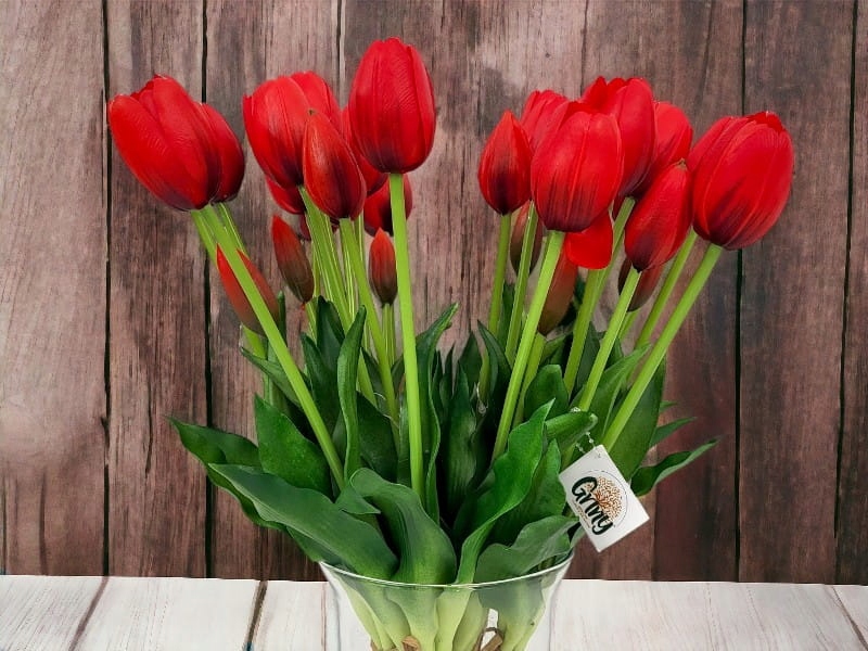 Предлагаем красивый букет из феноменальных силиконовых тюльпанов, очень похожих на живые цветы. Наши тюльпаны чрезвычайно реалистичны и станут прекрасным украшением любого интерьера. Они придадут весеннюю свежесть и оживят любое помещение. Они хорошо подойдут для гостиной, офиса, ресторана и многих других мест.