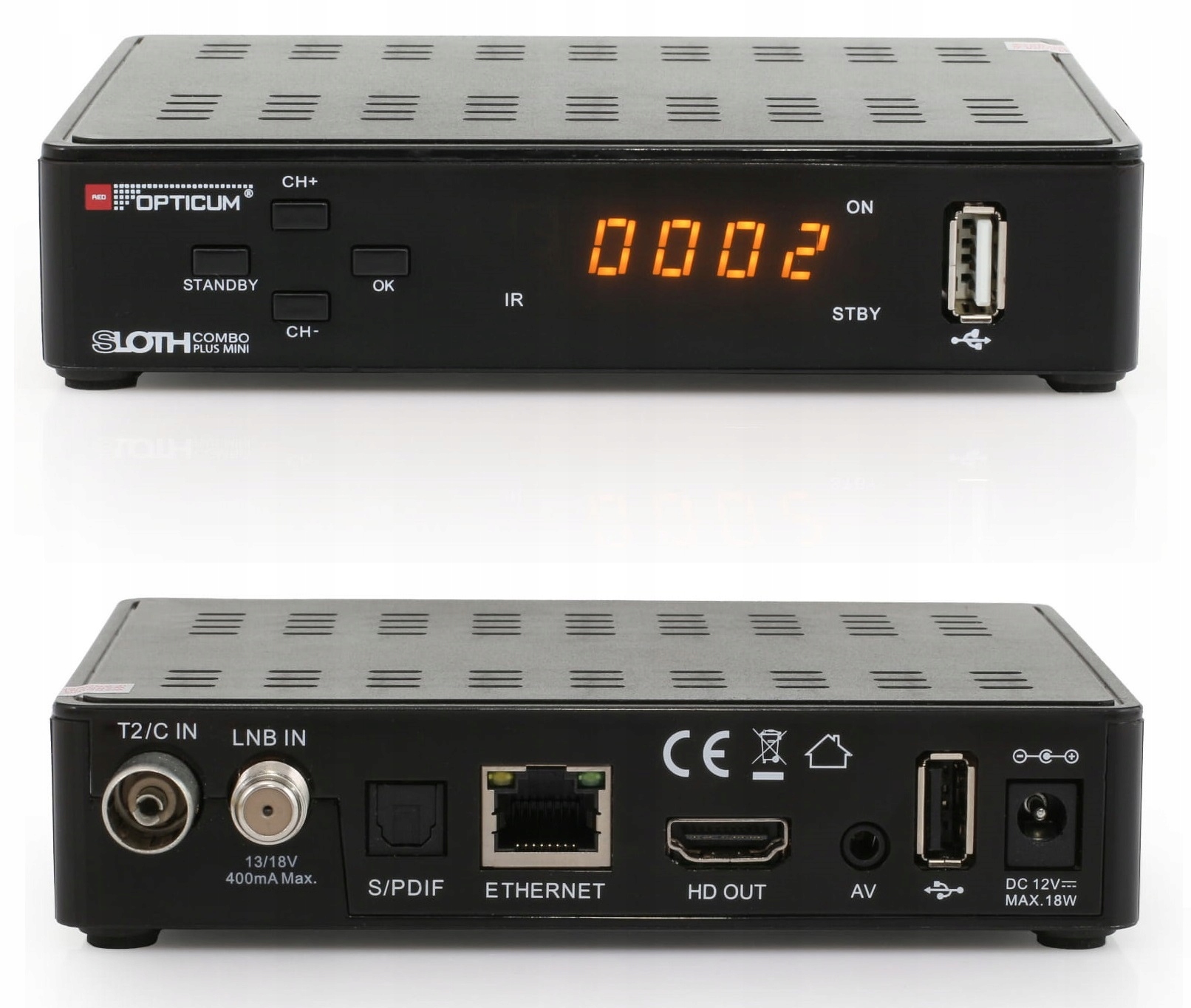 Тюнер DVB-C, DVB-S, DVB-S2, DVB-T, DVB-T2 Opticum SLOTH Combo Plus Mini