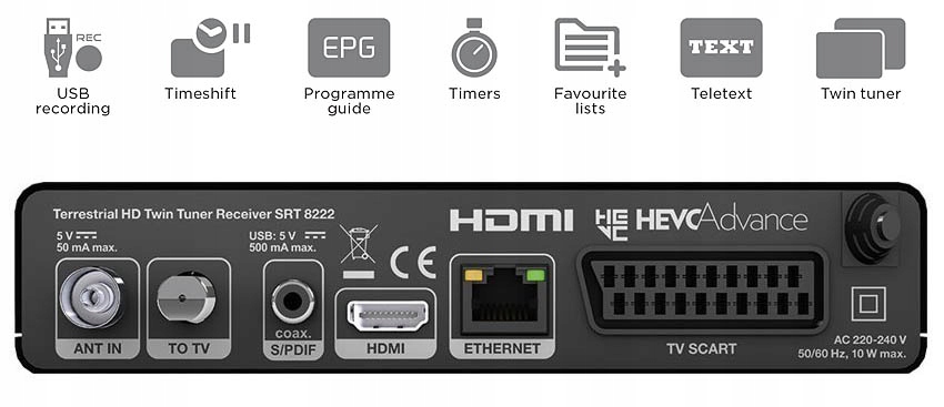 💡 Две головки, двойная функциональность! Данная модель тюнера позволяет одновременно смотреть 📺 и записывать 📼 два разных канала с любого мультиплекса. Чтобы записать любимые программы, просто подключите флэш-накопитель к порту USB 🔌.