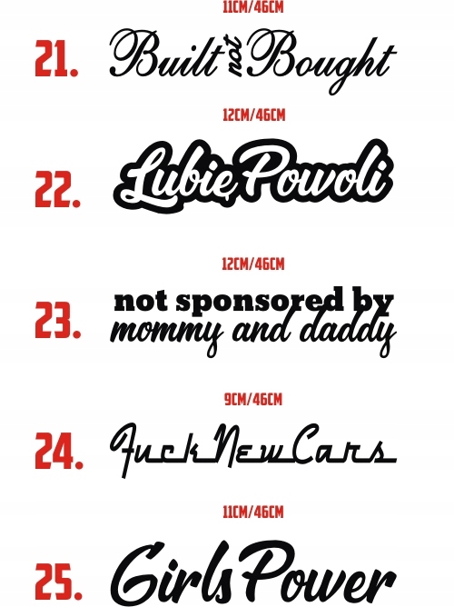 Просматривая «Тюнинговые наклейки надписи на стекле», вы можете быть уверены, что данный товар из каталога «Наклейки» будет доставлен из Польши и проверен на целостность. В цене товара, указанной на сайте, учтена доставка из Польши. Внимание!!! Товары для Евросоюза, согласно законодательству стран Евросоюза, могут отличаться упаковкой или наполнением.