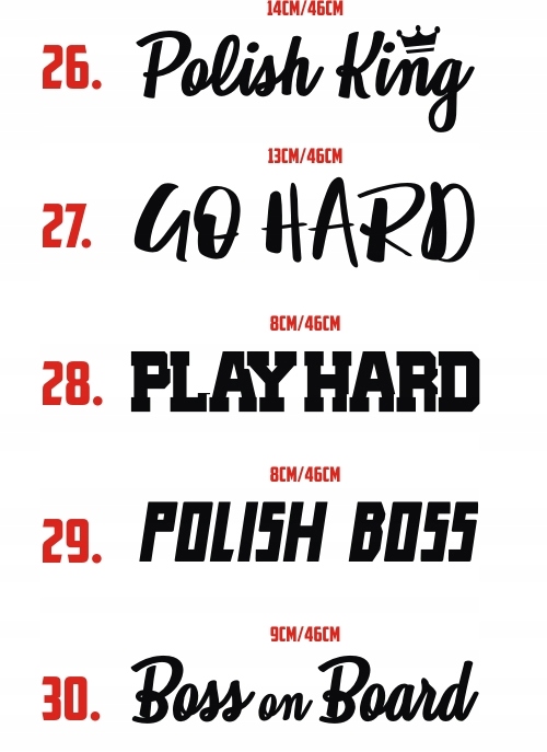 - Размеры наклейки: описаны над рисунками