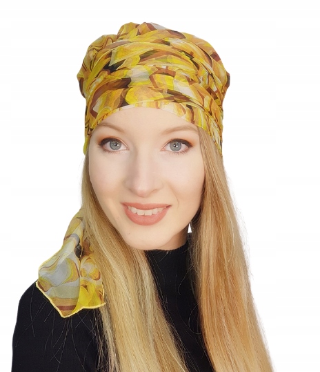 Тонкий материал, струящийся, воздушный. Внутренние швы скрыты - не раздражают кожу головы.