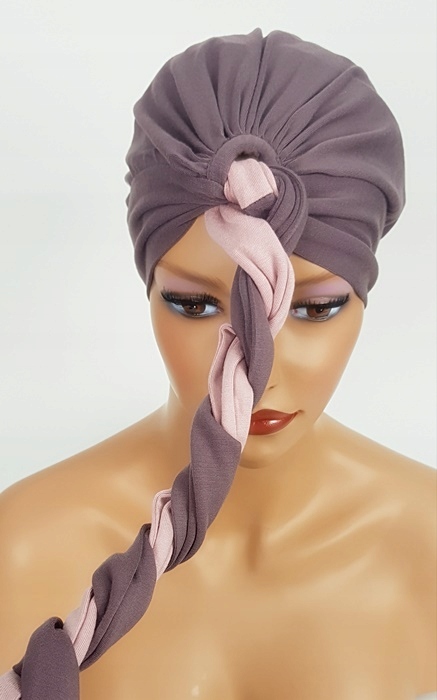 Тюрбан Sejla x-1 цвета баклажана с розовым