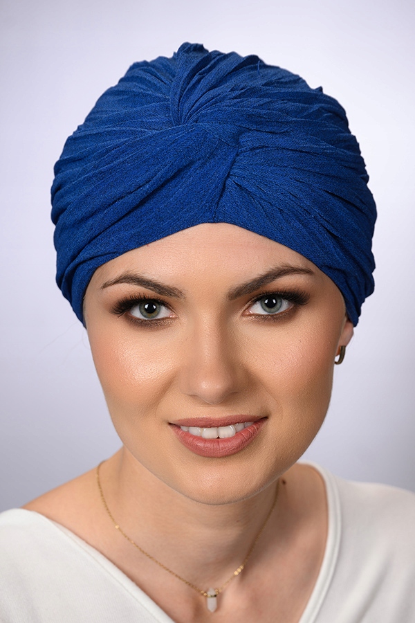 Модель выполнена из плиссированной ткани, благодаря чему Тюрбан имеет большой объем и не прилипает к голове.