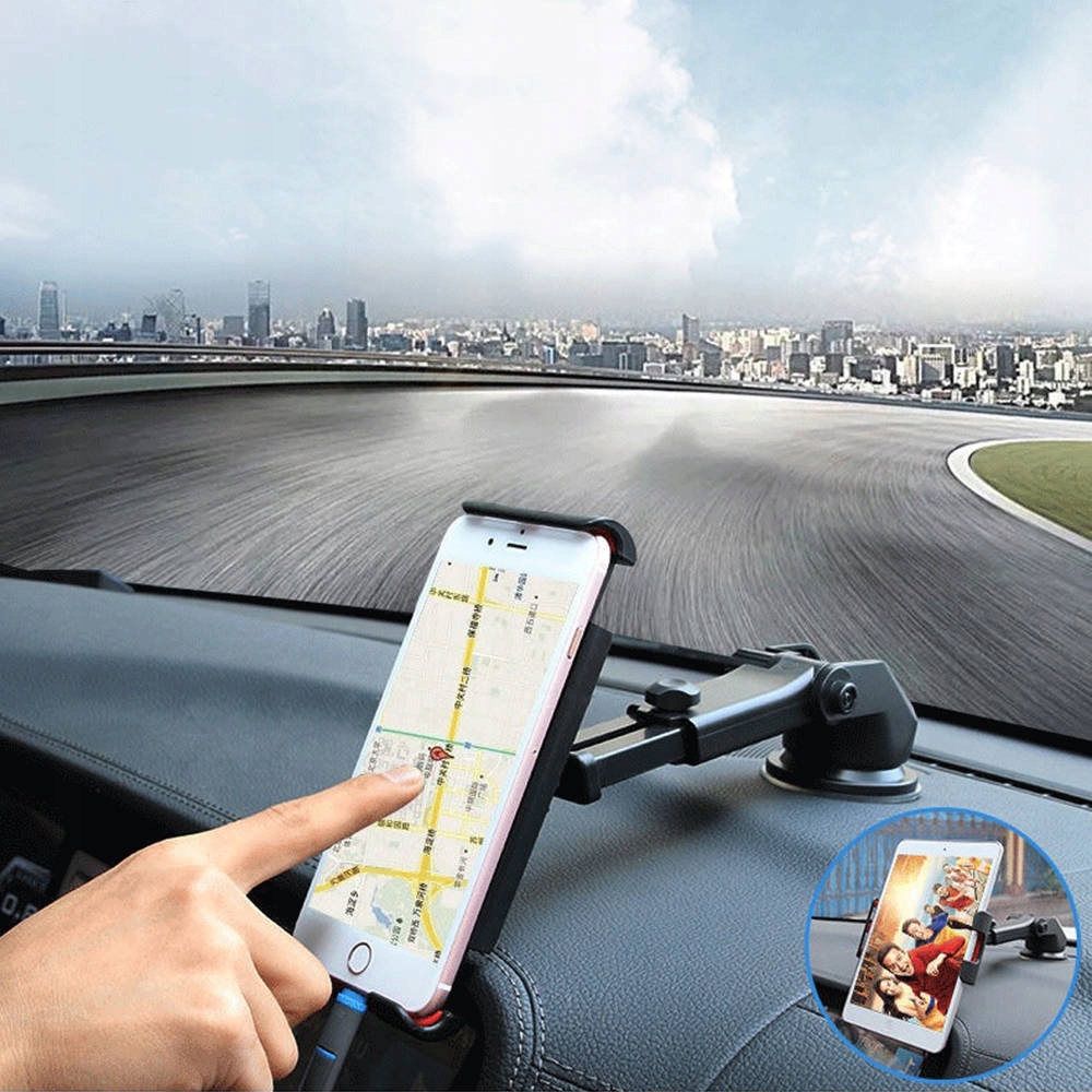 Универсальный автомобильный держатель для мобильных устройств диагональю от 4 до 10". Изделия идеально подходят для использования навигации в длительных поездках. Крепится держатель с помощью присоски, внутренняя часть держателя покрыта силиконом. держатель имеет практичный вырез на одной из дужек, позволяющий подключить питание к мобильному устройству.