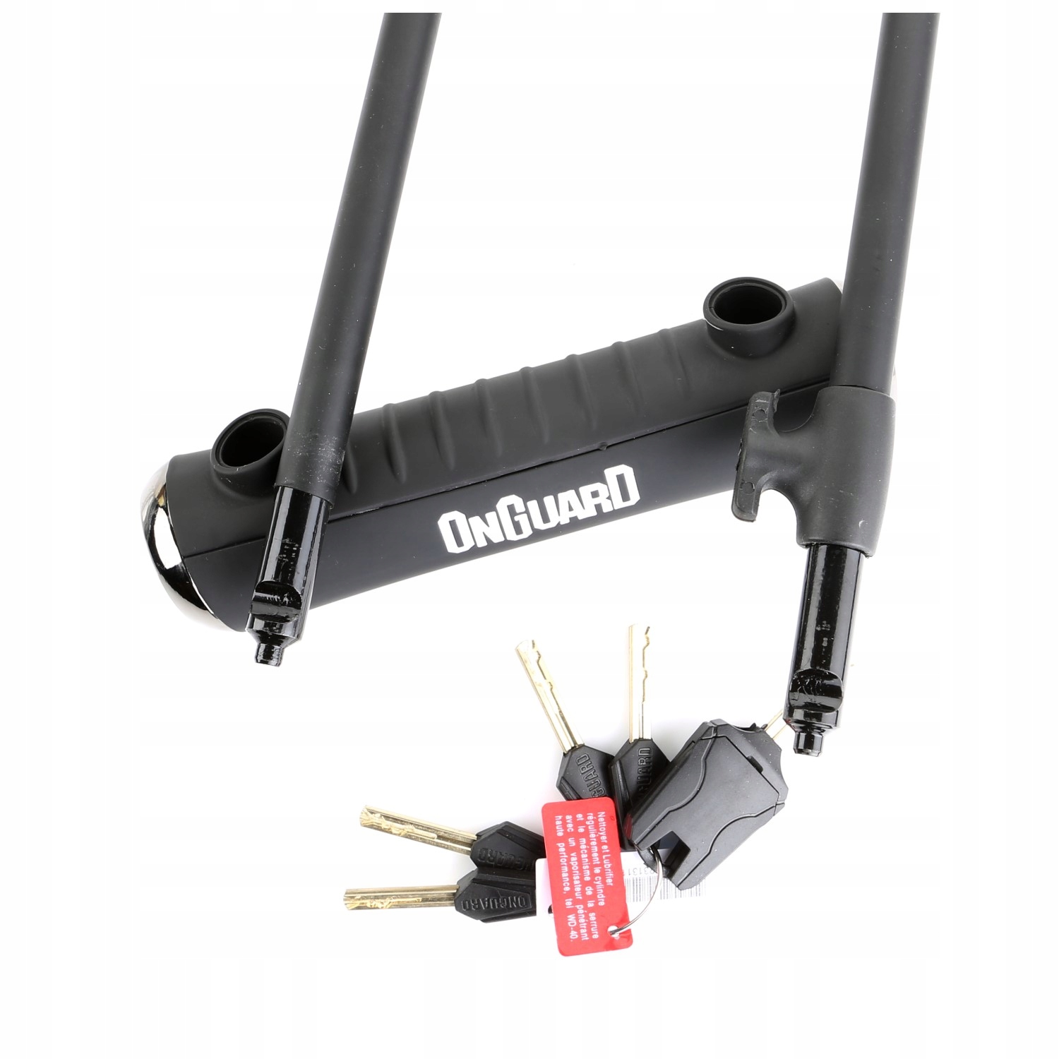 Запирающий механизм X4P, используемый в U-lock OnGuard PitBull DT 8005, представляет собой защиту с 4 храповыми механизмами. Застежка диаметром 14 мм изготовлена из закаленной стали. Он устойчив к порезам, подрыву или использованию рычагов. Его необычная ширина позволяет прикрепить велосипед к толстому столбу или фонарному столбу. В комплект входят 5 ключей, вырезанных лазером, в том числе 1 с небольшой светодиодной подсветкой.