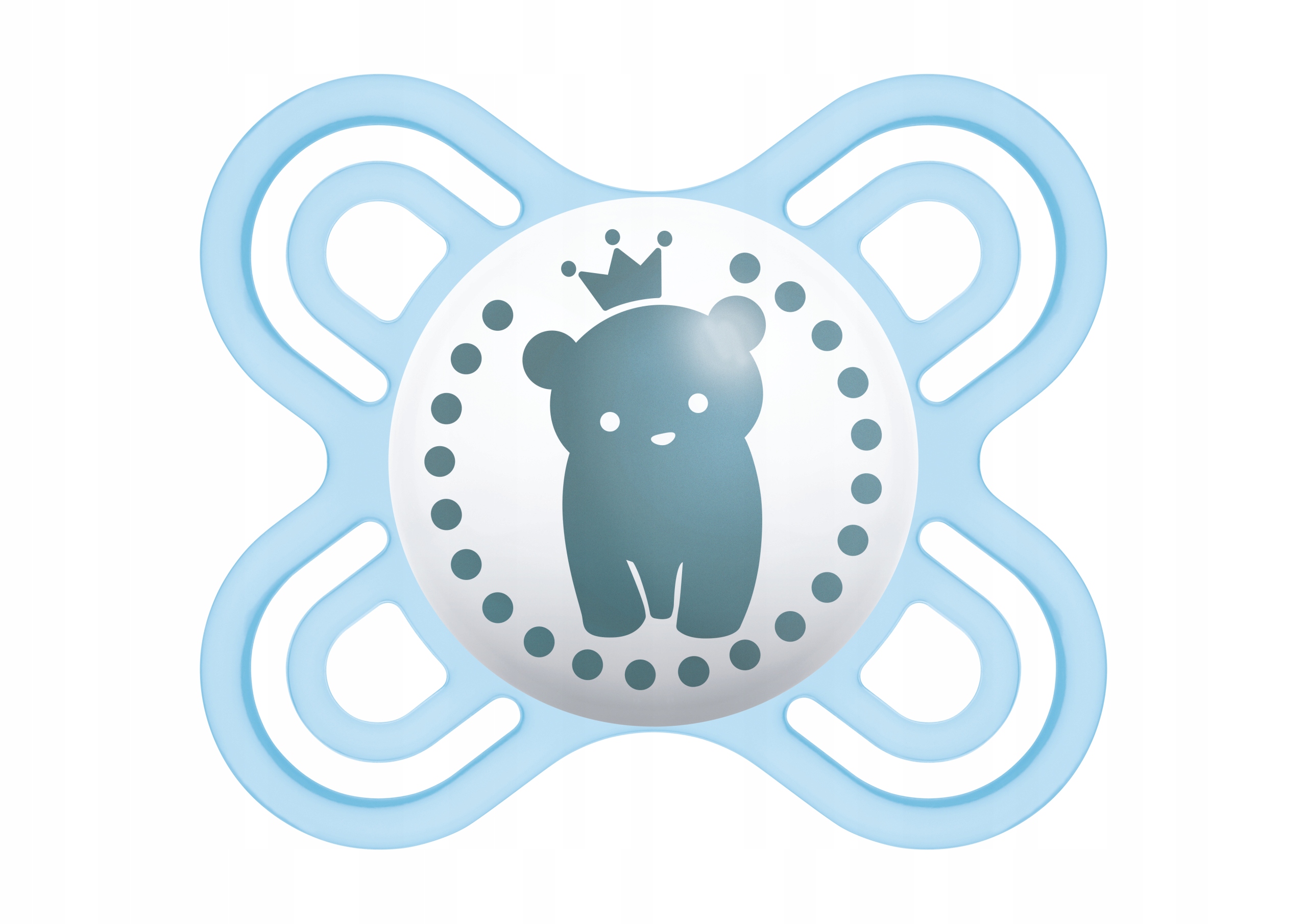 У меня ортодонтическая симметричная пустышка из силикона 0+.