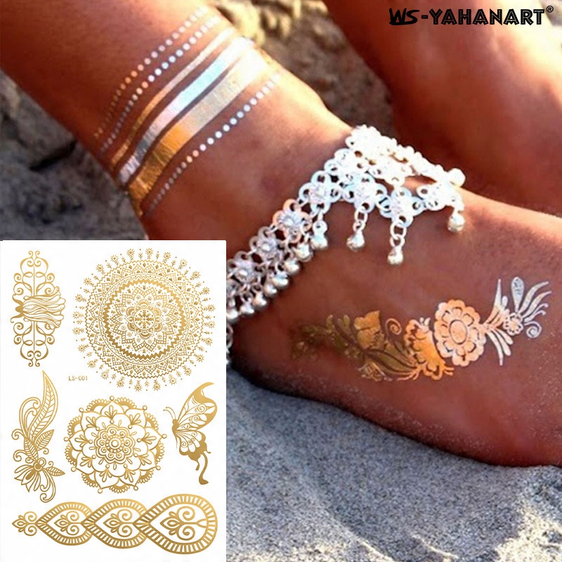 Во временных татуировках металлические наклейки с хной и кружевным мотивом (изюминка