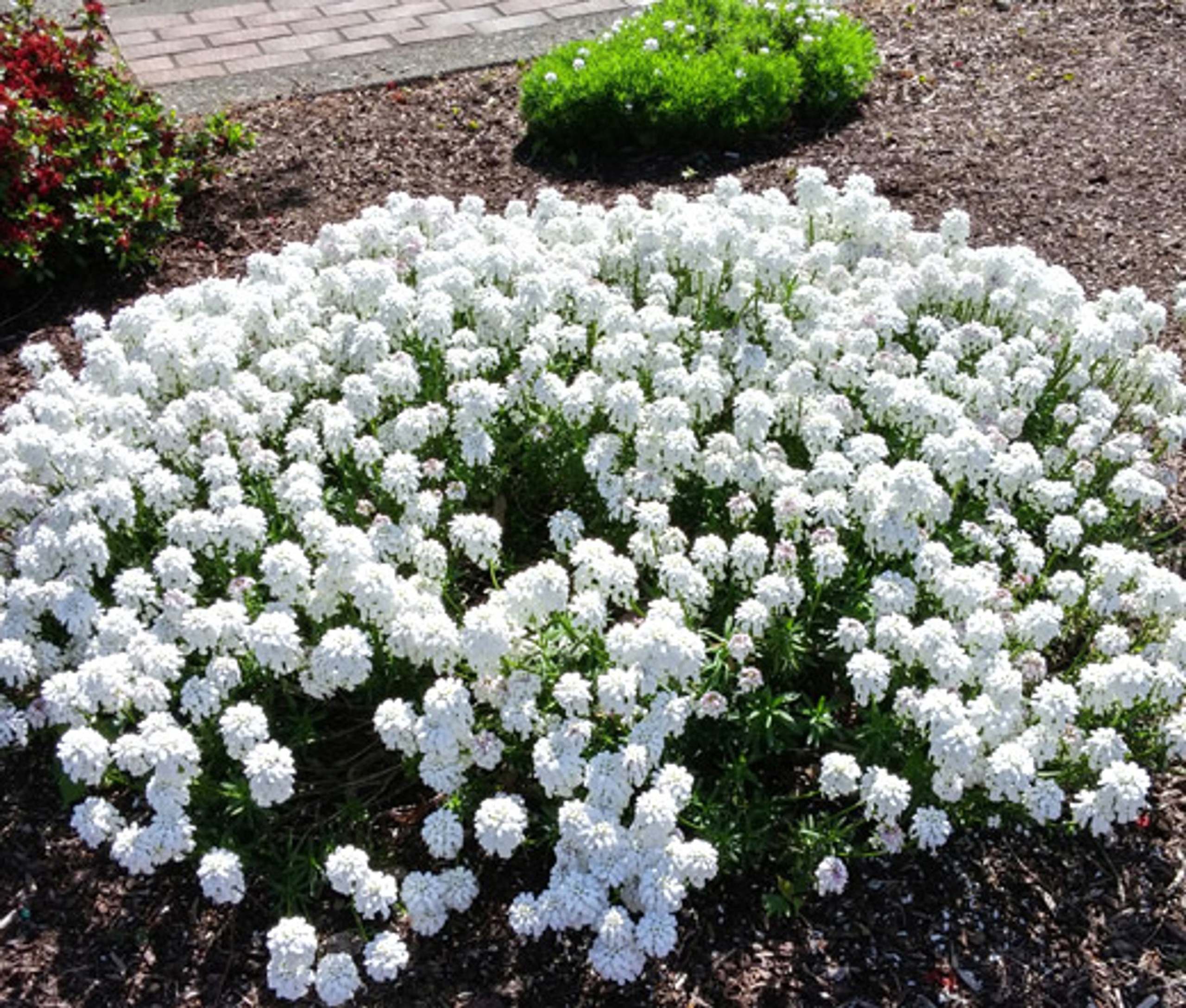 - Цветы: снег -белые, маленькие цветы, собранные в плотных навесах, которые покрывают растение, как белый ков. Полем Это расцветает в изобилии и длинных. b> с апреля по июнь - весной цветет, создавая впечатляющий белый цветочный коврик. до 40-50 см. В солнечных местах, хотя он терпит легкий оттенок > Уход: