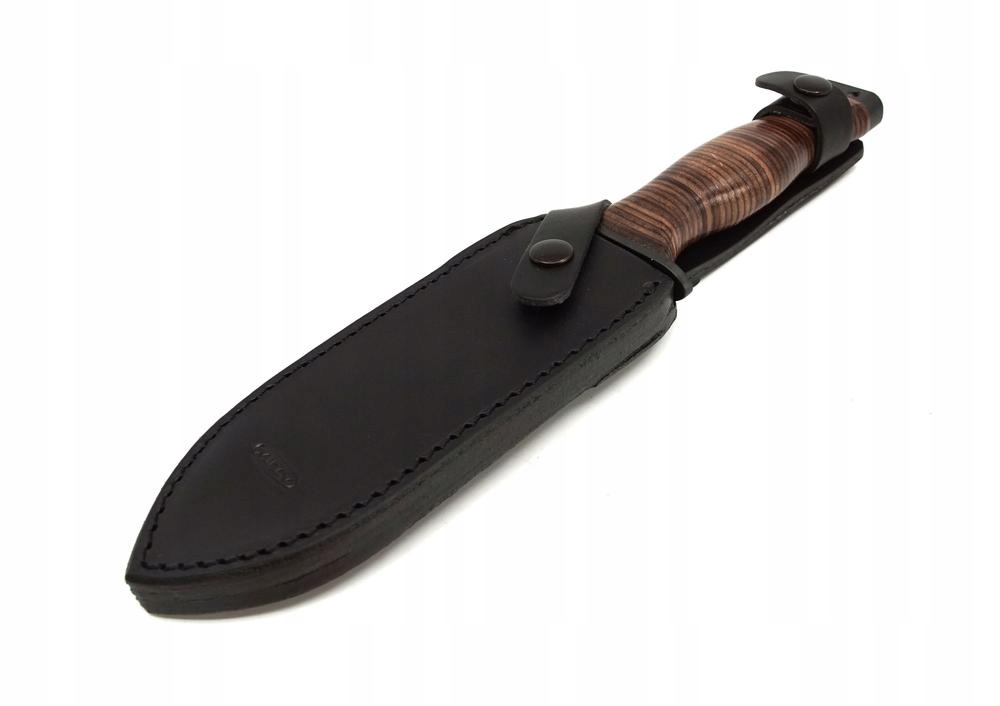 Нож Praktik LM доставляется с черным кожаным влагалищем.