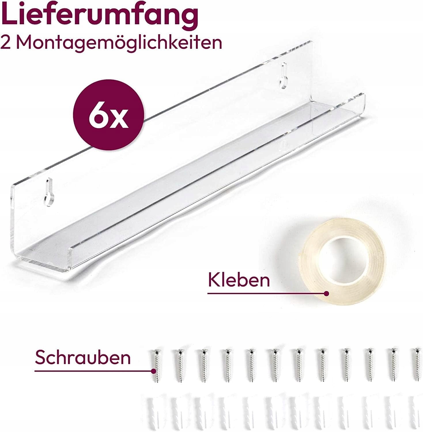 Uchwyt ścienny, półka do płyt winylowych, gramofonowych Zestaw 6 sztuk