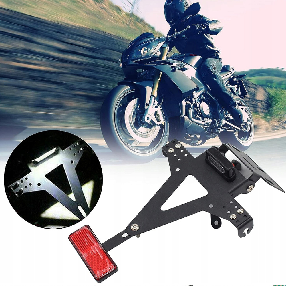 UCHWYT NA TABLICĘ REJESTRACYJNĄ MOTOCYKLA REGULOWANY KĄT ZE ŚWIATŁEM LED