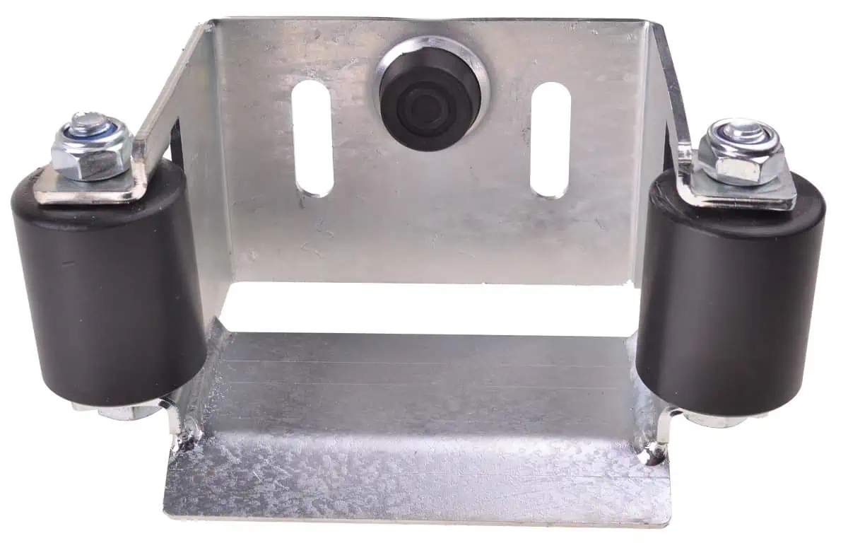Стальной элемент - Держатель рампы для ролика рампы самонесущих откатных ворот, рассчитан на рельс 70х70 мм. Он стабилизирует ворота после закрытия и распределяет их вес на большее количество элементов, что значительно продлевает срок службы тележек. На задней стенке имеются два крепежных отверстия и резиновый бампер. Оцинкованное изделие.