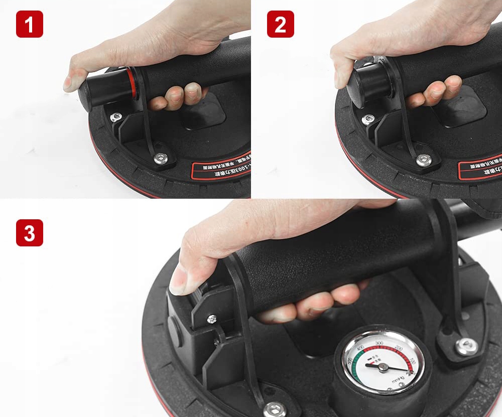 UCHWYT PRZYSSAWKA PRÓŻNIOWA Z POMPKĄ MANOMETREM DO PŁYTEK GRESU SZYB GLAZUR