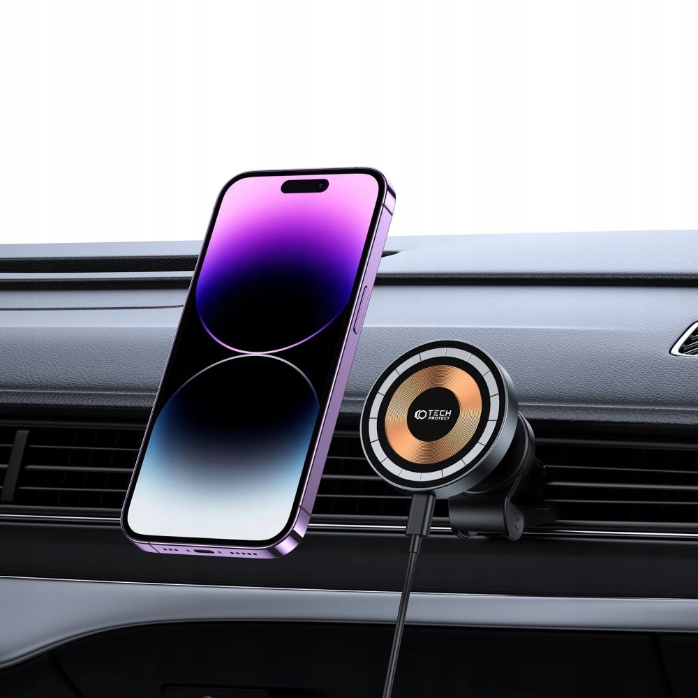 UCHWYT SAMOCHODOWY ŁADOWARKA INDUKCYJNA Qi DO MAGSAFE NA KRATKĘ NAWIEWU