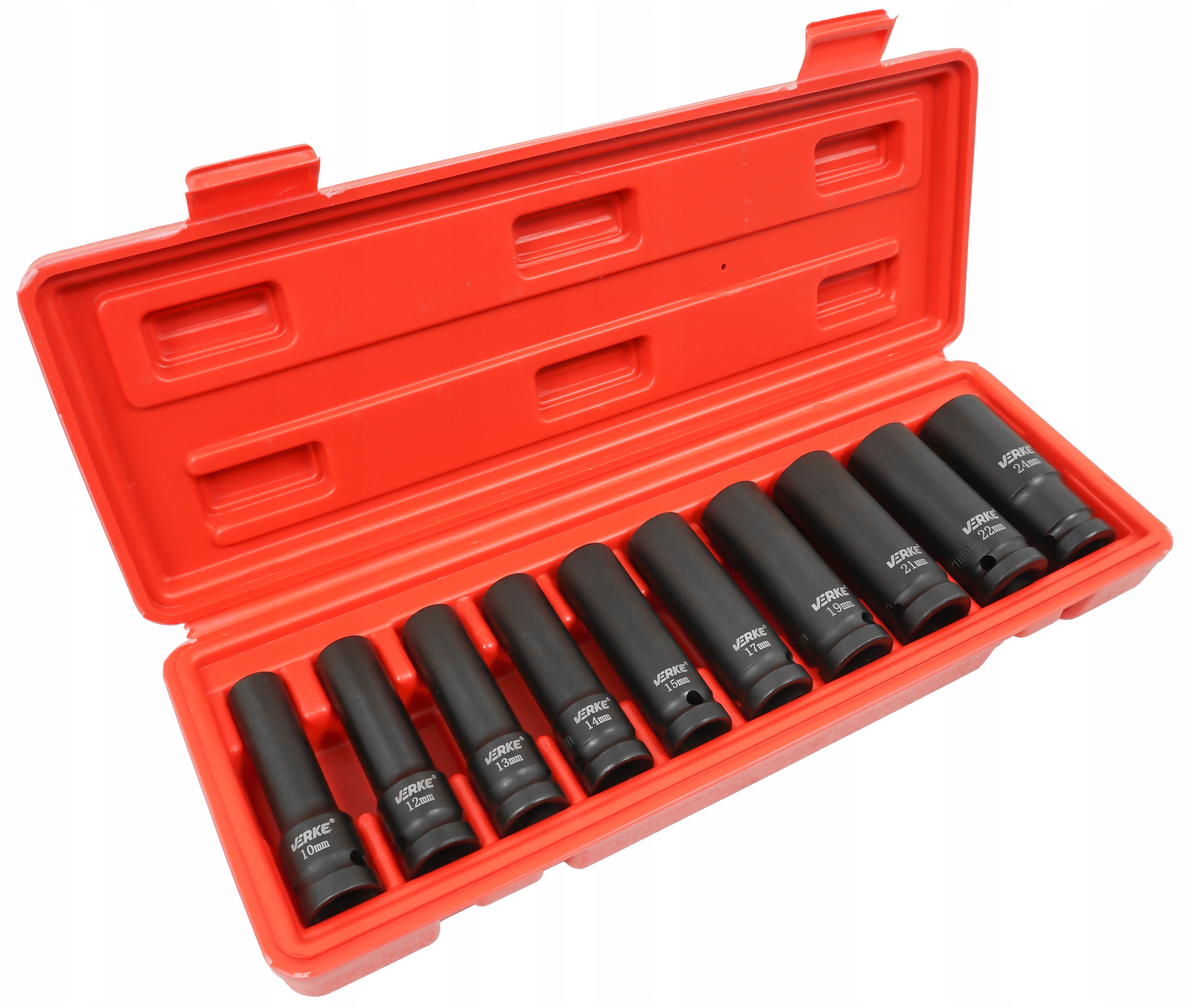 ГОЛОВКИ УДАРНЫЕ ДЛИННЫЕ 1/2" 10 ШТ 10-24мм VERKE