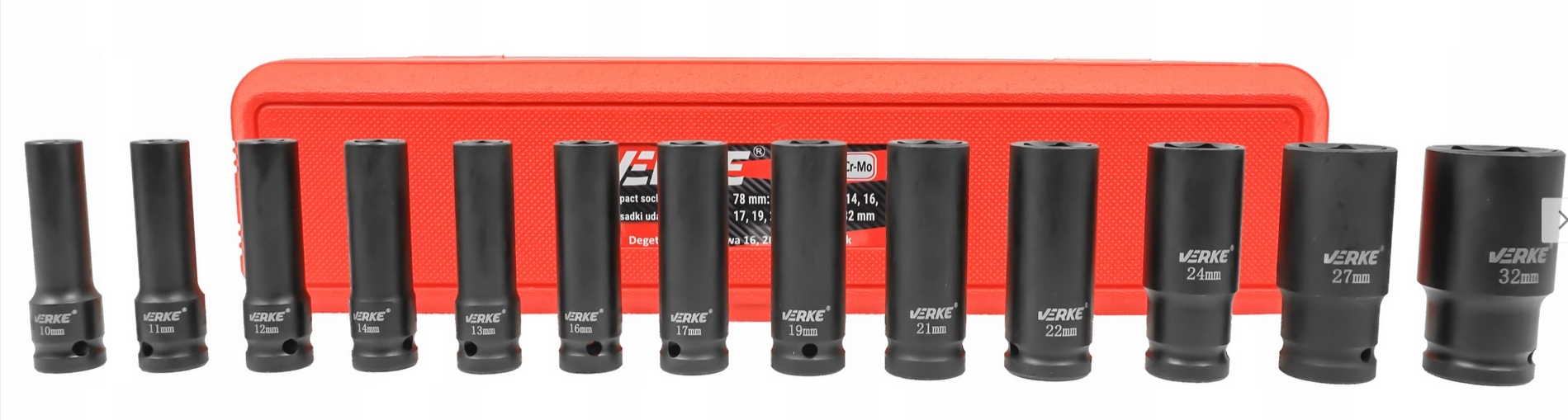 - ударные головки длинные 1/2": 10, 12, 13, 14, 15, 16, 17, 18, 19, 21, 22 , 24, 27, 30, 32 мм