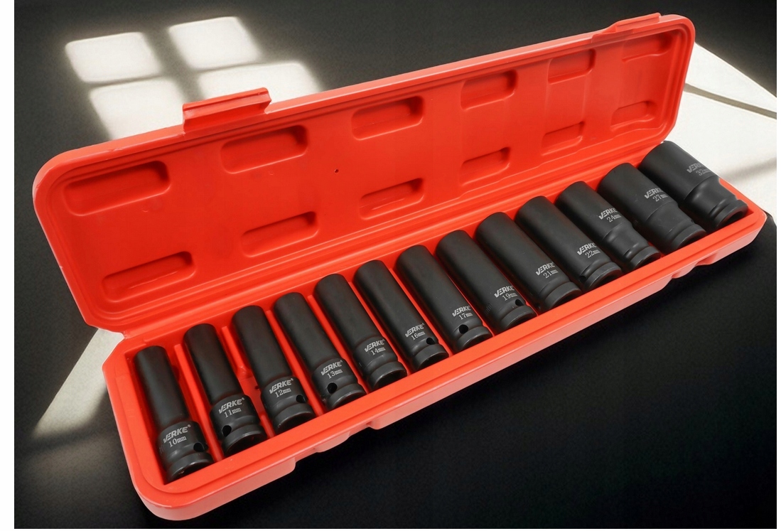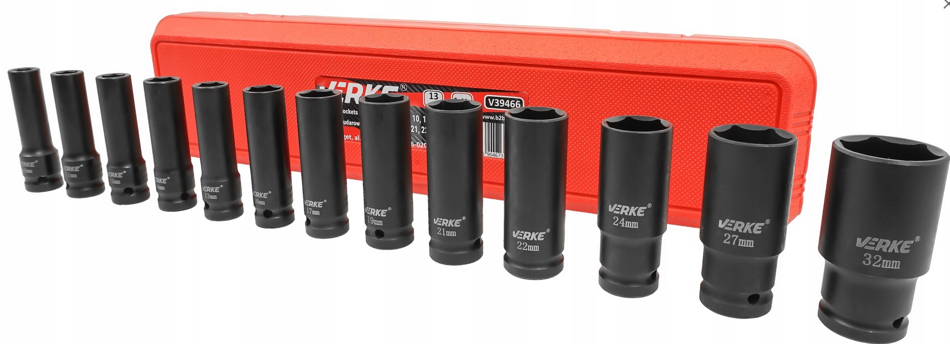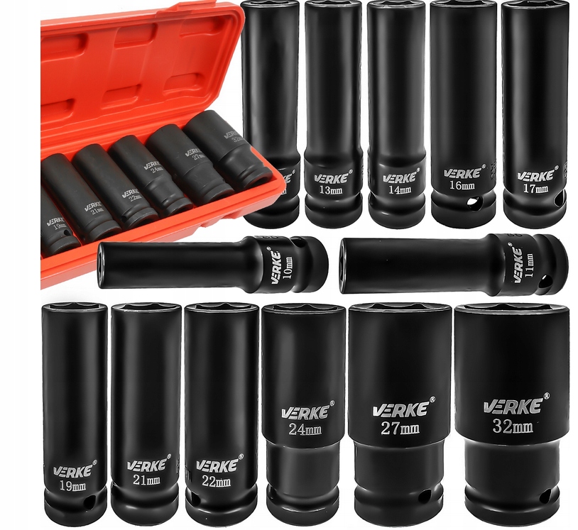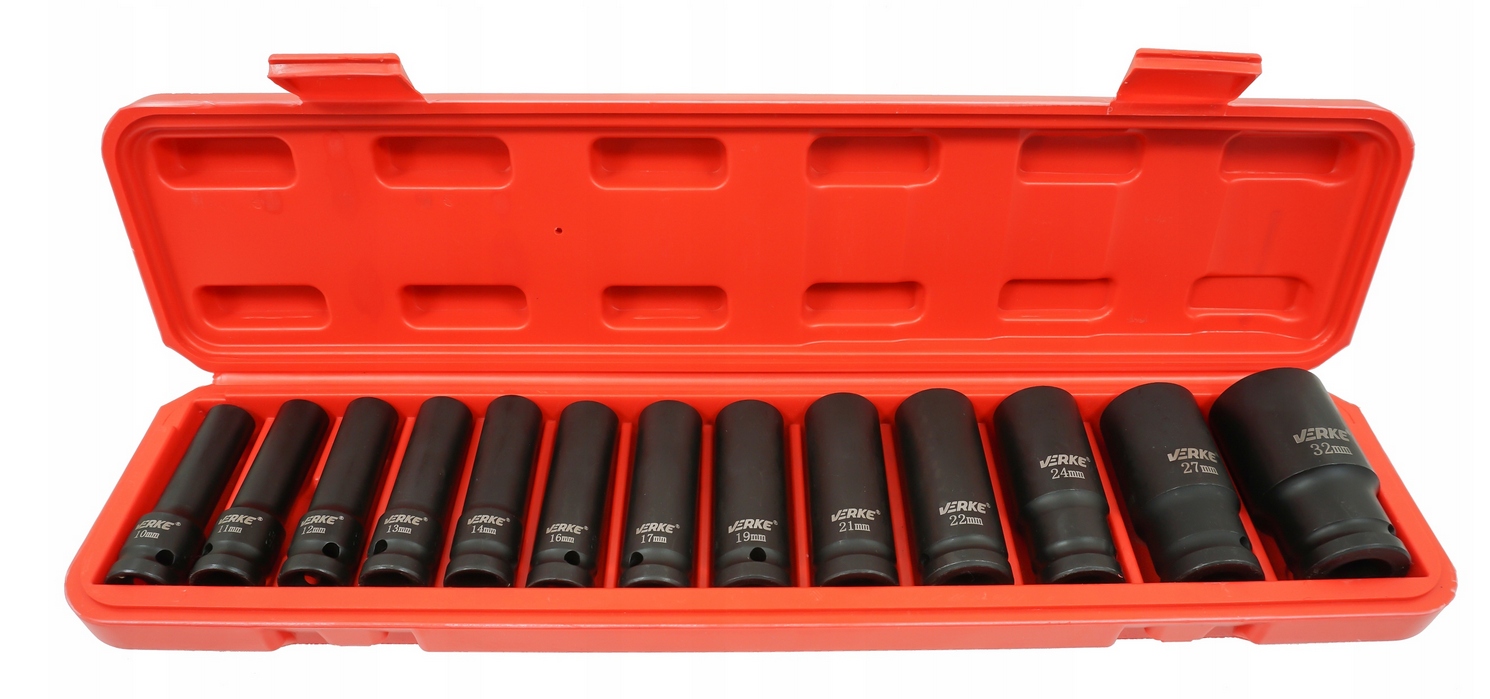 - Включает шестигранные длинные ударные головки популярных размеров от 10 до 32 мм.