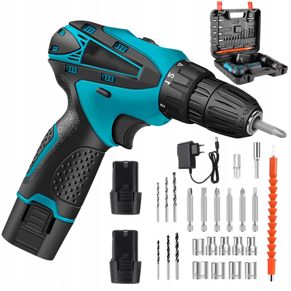 УДАРНАЯ ДРЕЛЬ, АККУМУЛЯТОРНАЯ ОТВЕРТКА, НАСАДКИ, СВЕТОДИОДНЫЕ РОЗЕТКИ + 2 АККУМУЛЯТОРНЫХ КОРПУСА