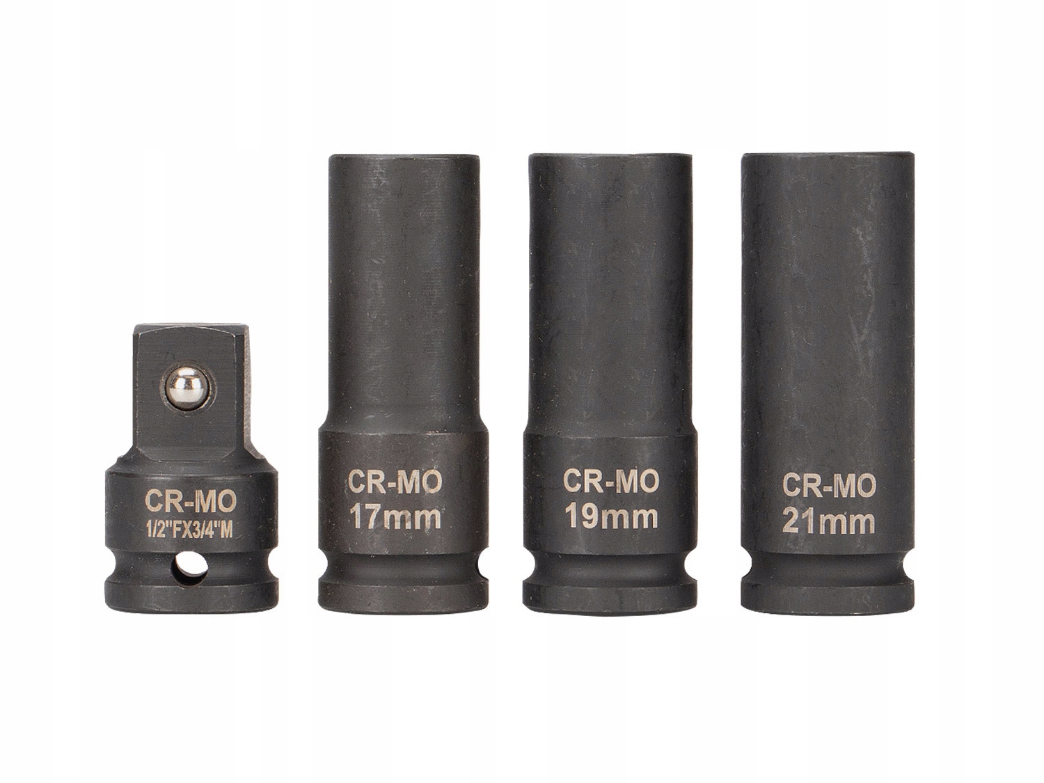 3 торцевых ключа (17/19/21 мм), 1 адаптер (от ½\ до ¼")