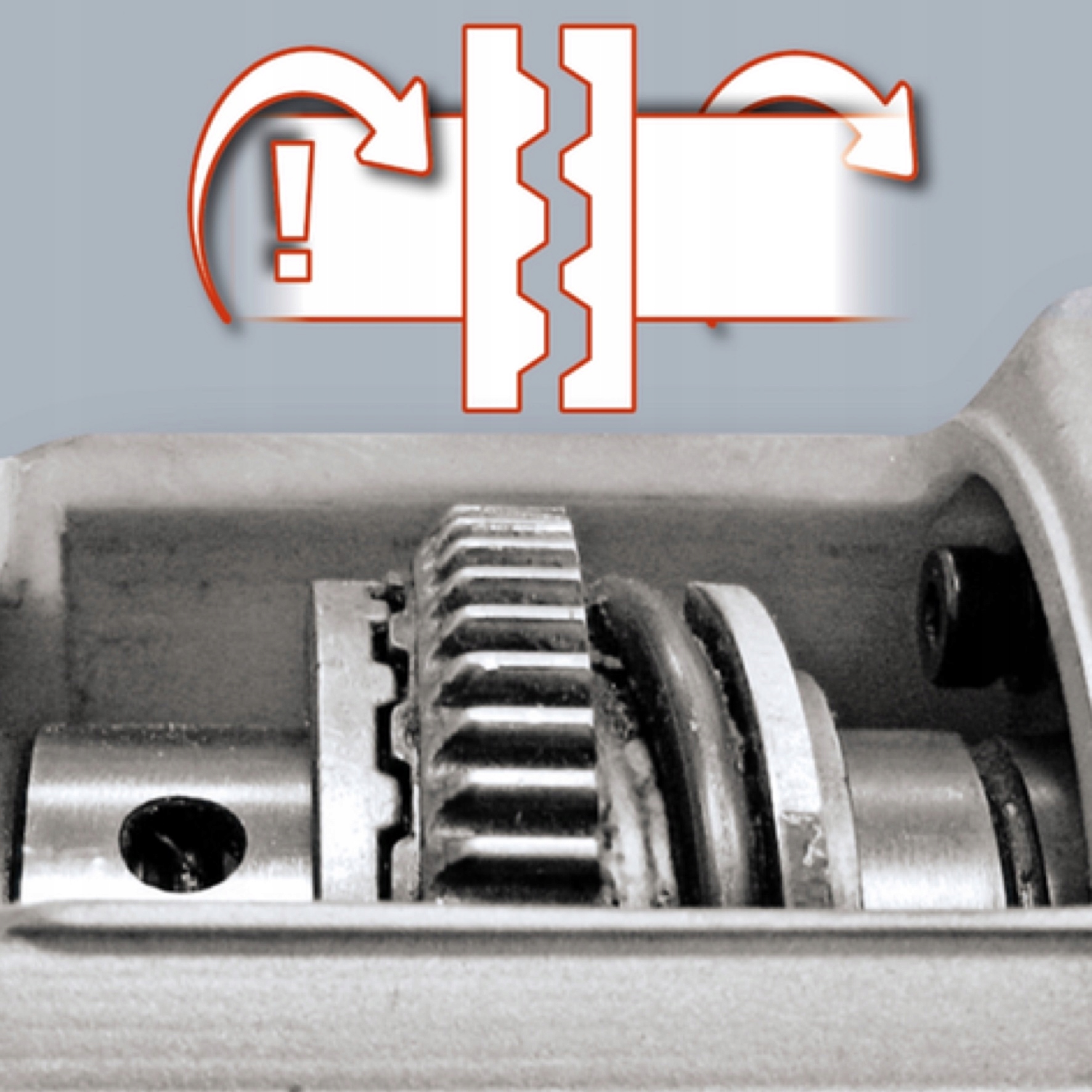 - Проскальзывающая муфта защищает от перегрузки и повышает безопасность пользователя.