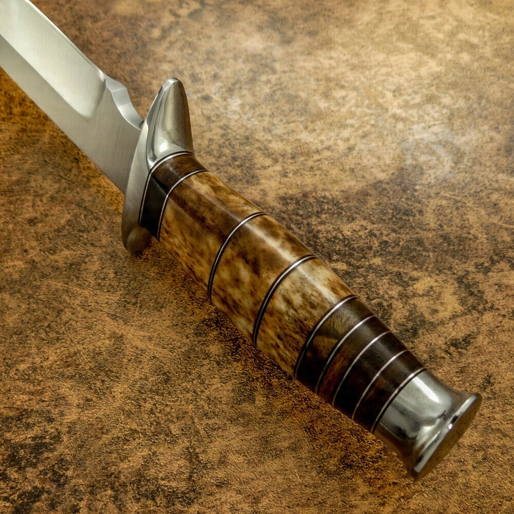 Рукоятка: окрашенная верблюжья кость, каповое дерево, и стальные прокладки,