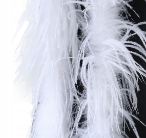 Боа изготовлена из настоящих страусиных перьев высочайшего качества. Сочетание перьев с наибольшим количеством мягкого пуха с более длинными, гладкими и рыхлыми перьями придает удаву «лохматый» вид.