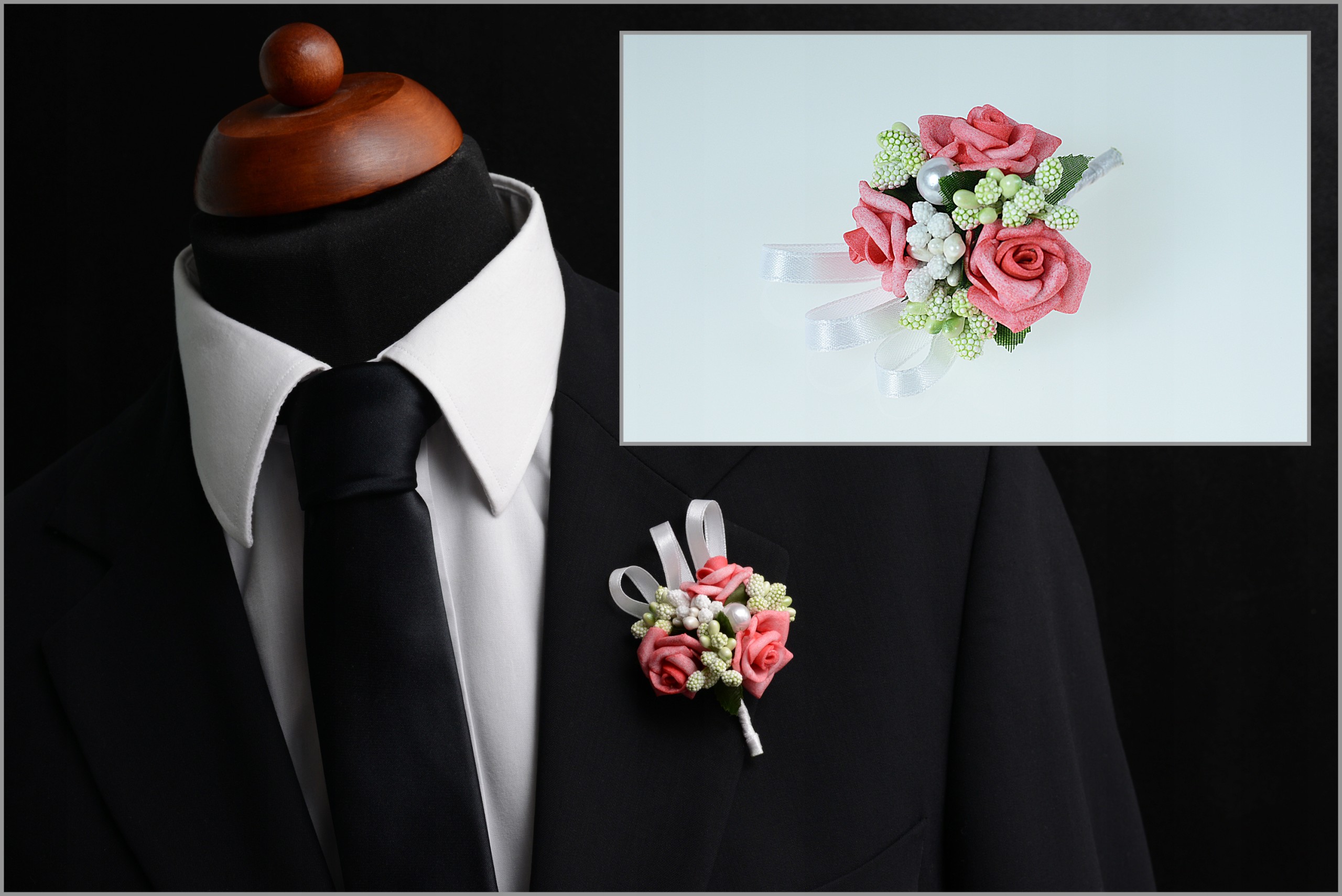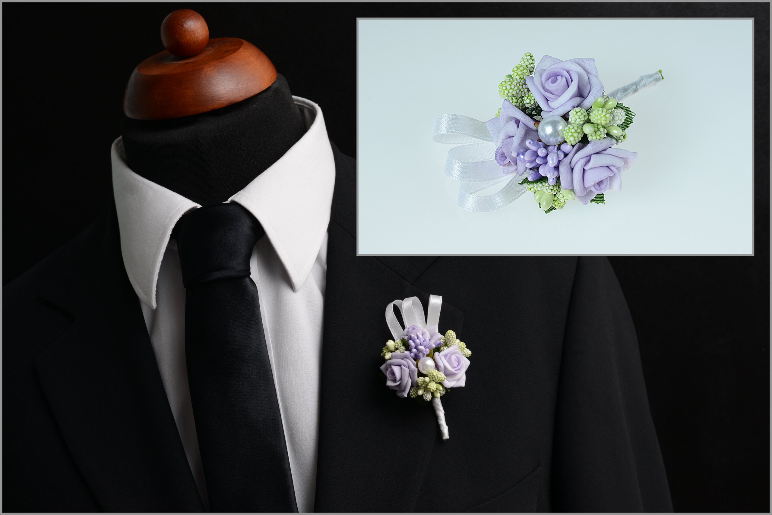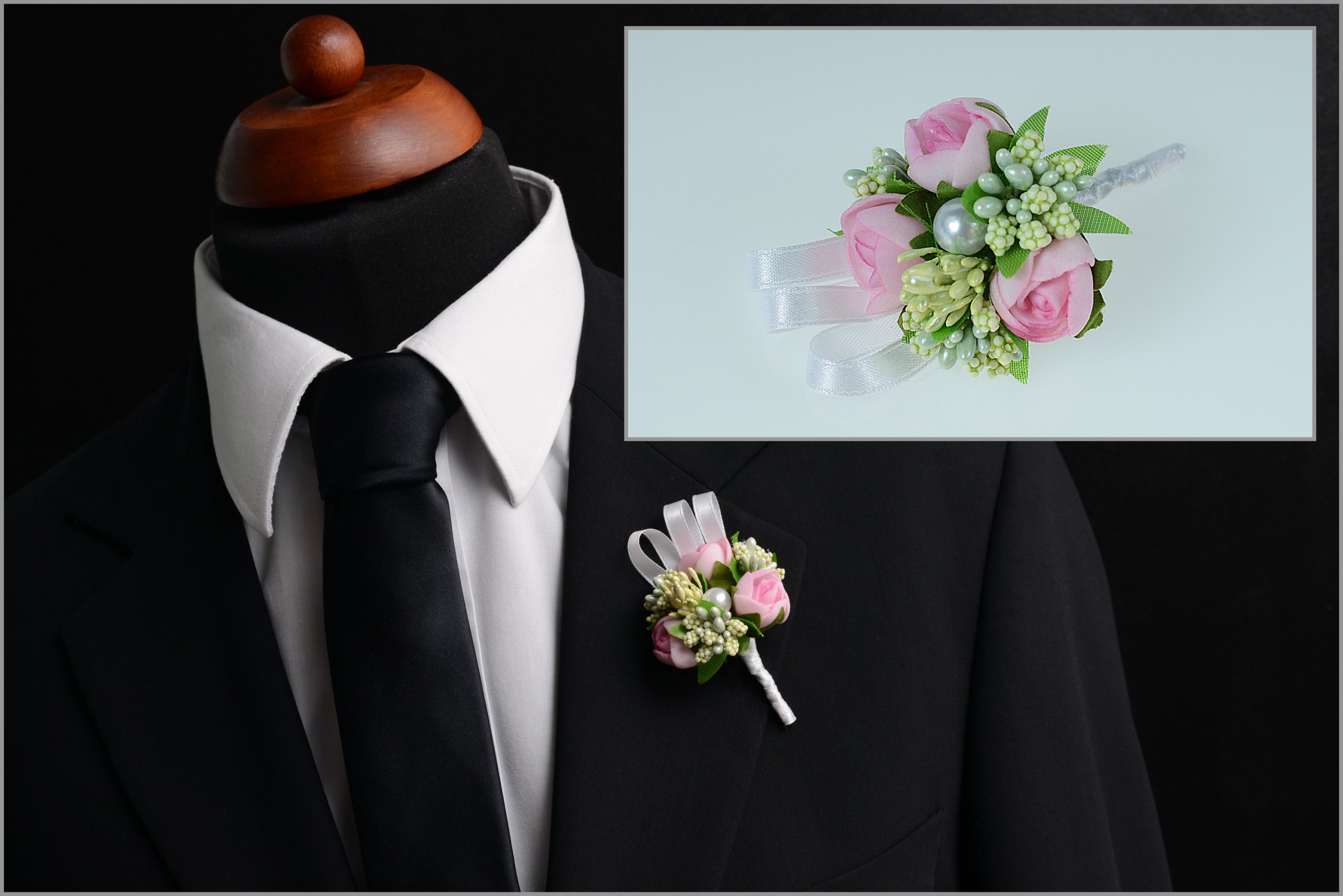 Из натуральных пенопластовых роз и привлекательных цветочных аксессуаров, дополненных лентой, гарантирует оригинальный образ на свадьбе или выпускном вечере.