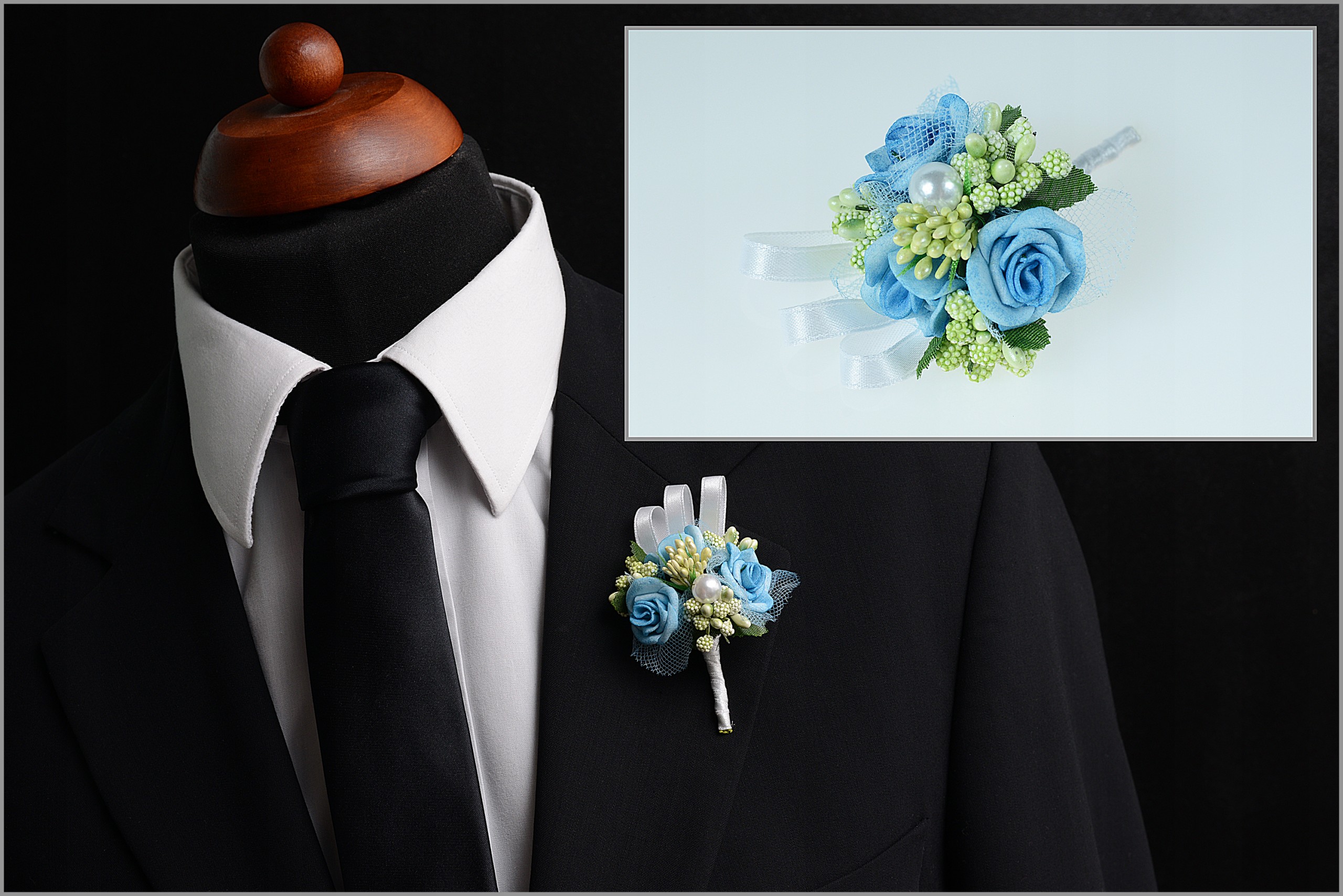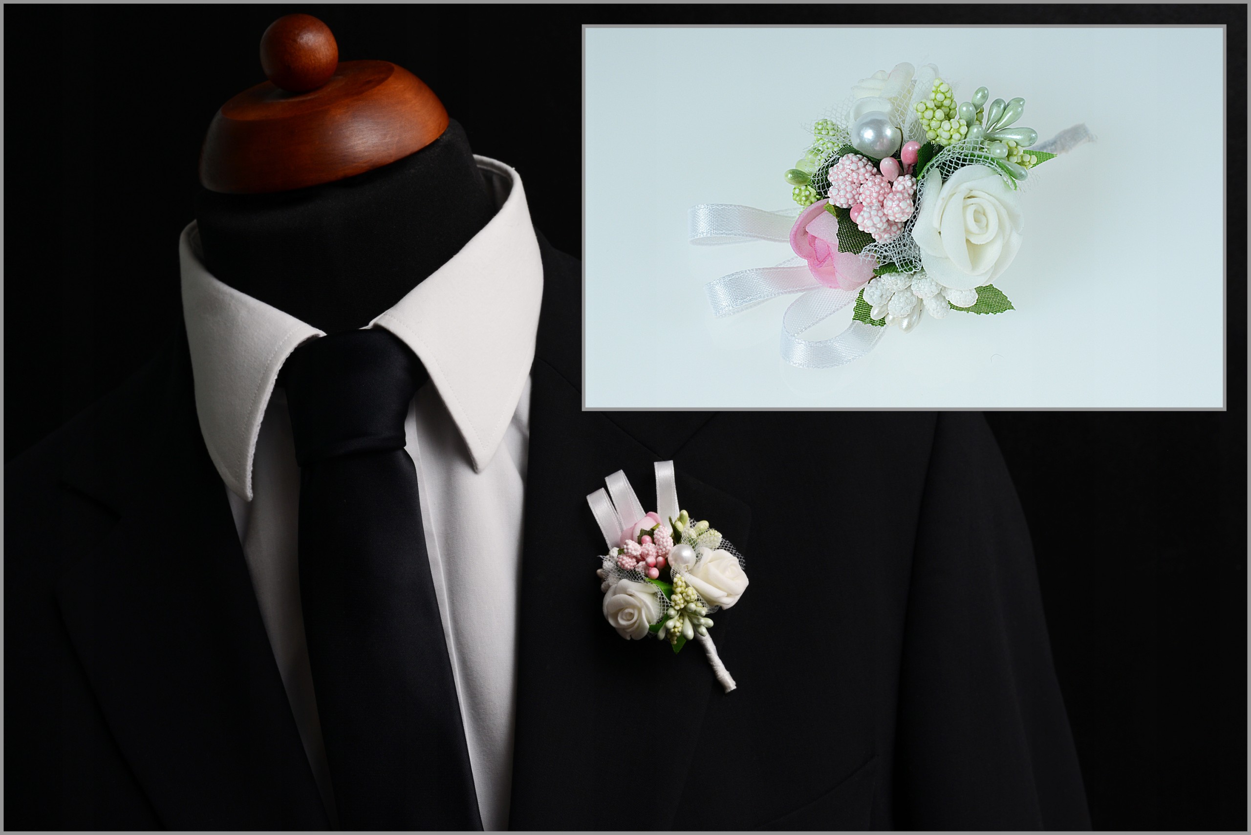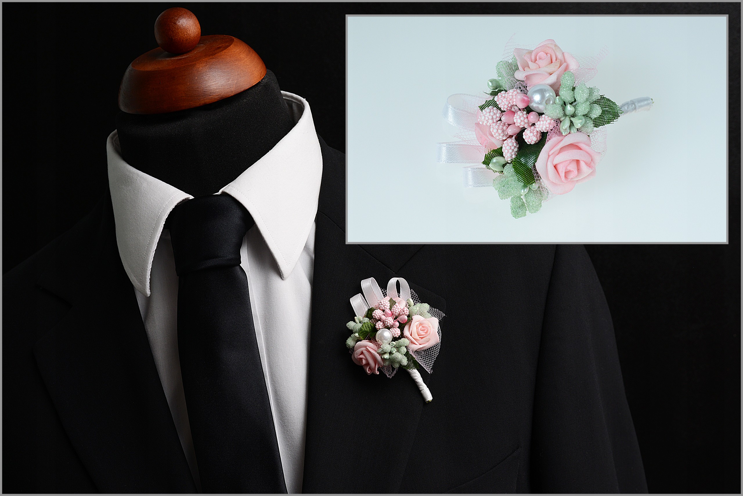 Из натуральных пенопластовых роз и привлекательных цветочных аксессуаров, дополненных лентой, гарантирует оригинальный образ на свадьбе или выпускном вечере.