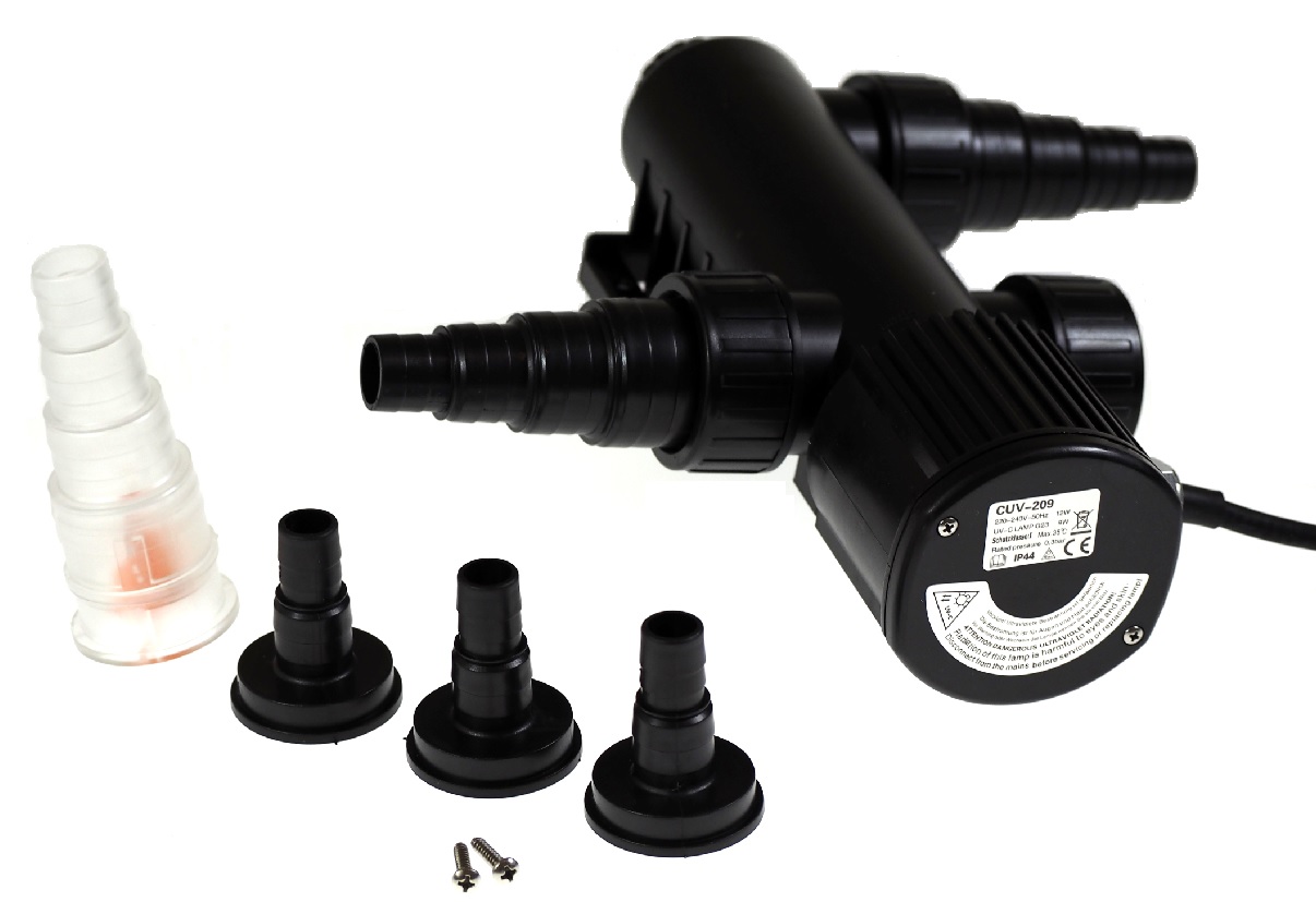 УФ-лампа 9 Вт – уничтожает водоросли в воде, борется с бактериями и паразитами, опасными для выращиваемых рыб и растений, устраняет причины большинства заболеваний, дает эффект кристально чистой воды в любом аквариуме объемом до 280 литров (в пруд до 8000 литров).