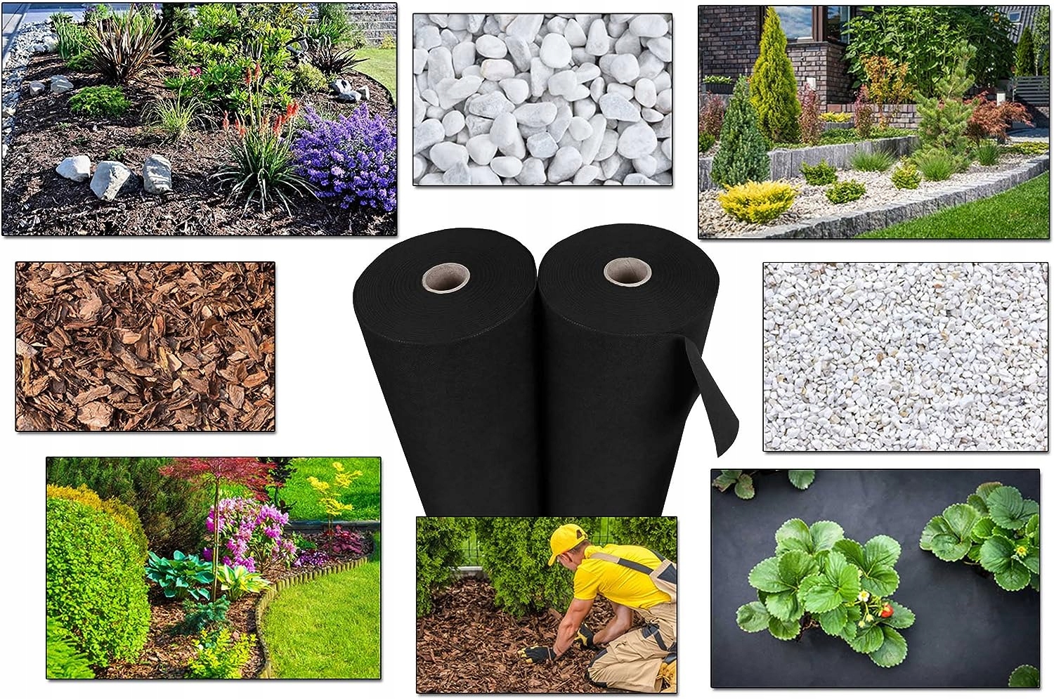 используется для мульчирования многих видов растений культивирования, но также декоративных кустарников и цветов. Прежде всего, это предотвращает развитие сорняков, что облегчает уход за взорванными растениями. отличие от черной фольги. Другим преимуществом является повышение температуры почвы благодаря обложке, которое, в свою очередь, способствует развитию корневой системы. отверстия. Место, покрытое агротекстилем, можно посыпать удобрениями, орошать и использовать жидкие удобрения. Разрушенные фрагменты агротекстиля могут быть удалены или покрыты последующими слоями, поддерживая практическую и эстетическую субстрат. На агротекстиле все виды декоративных камней, кора, песчана